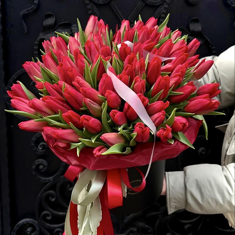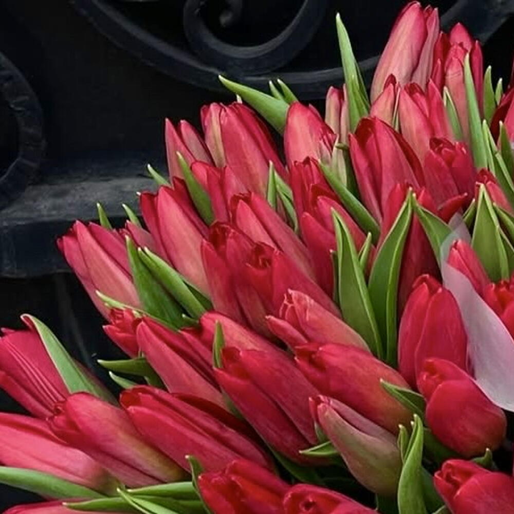 красные тюльпаны - 101 шт.