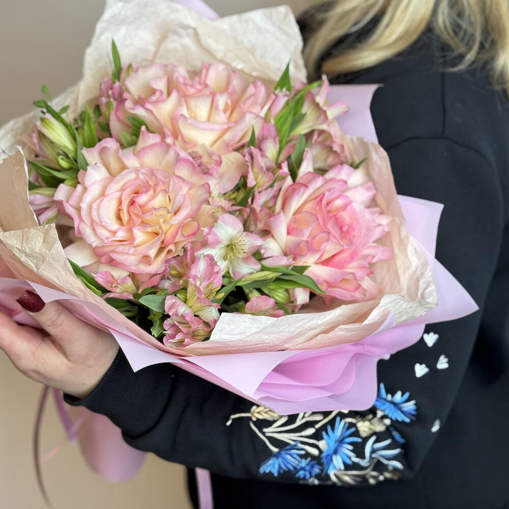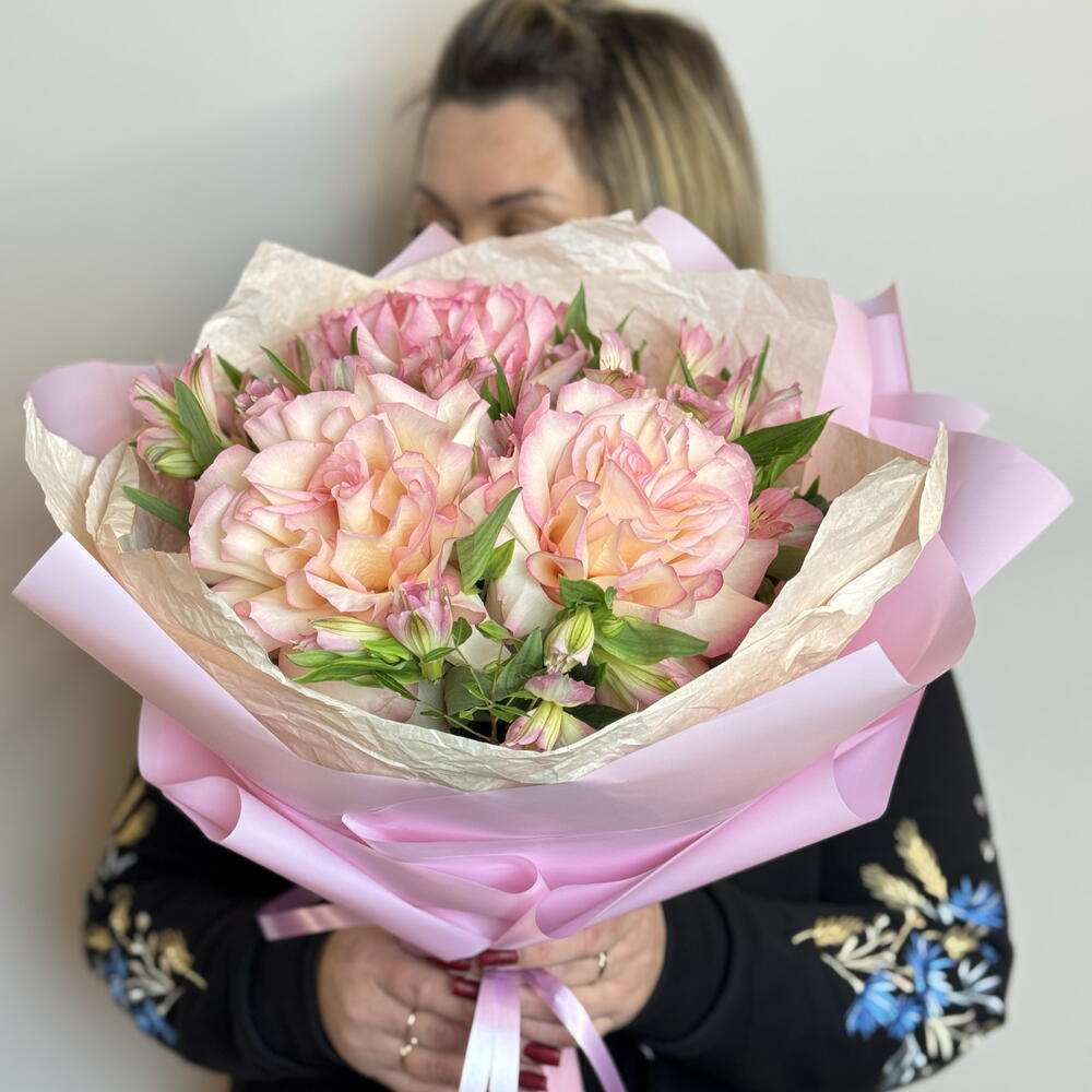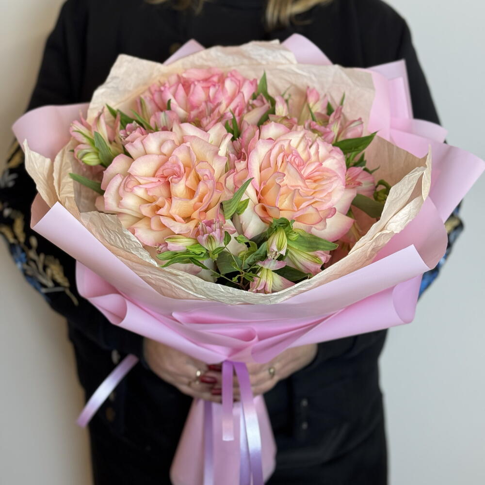 Шикарный букет Французские розы и альстромерия