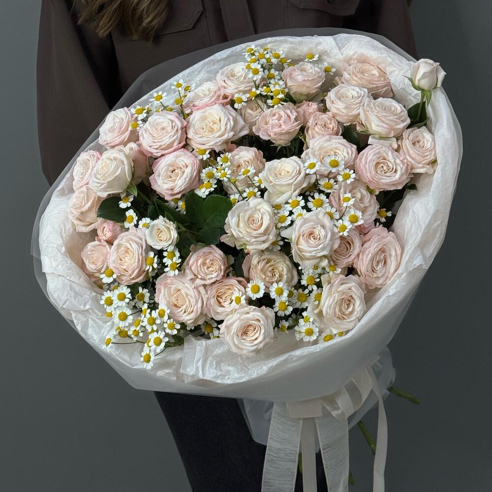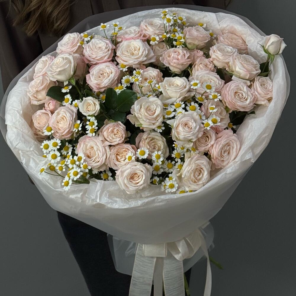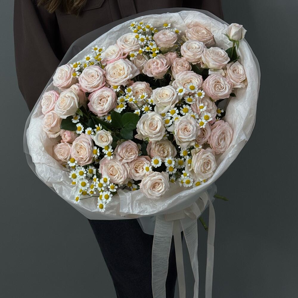 Букет кустовые розы и ромашка
