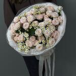 Кустовая роза - 7 шт. Ромашка - 5 шт. Упаковка дизайнерская - 1 шт. Открыточка с вашими пожеланиями - 1 шт.