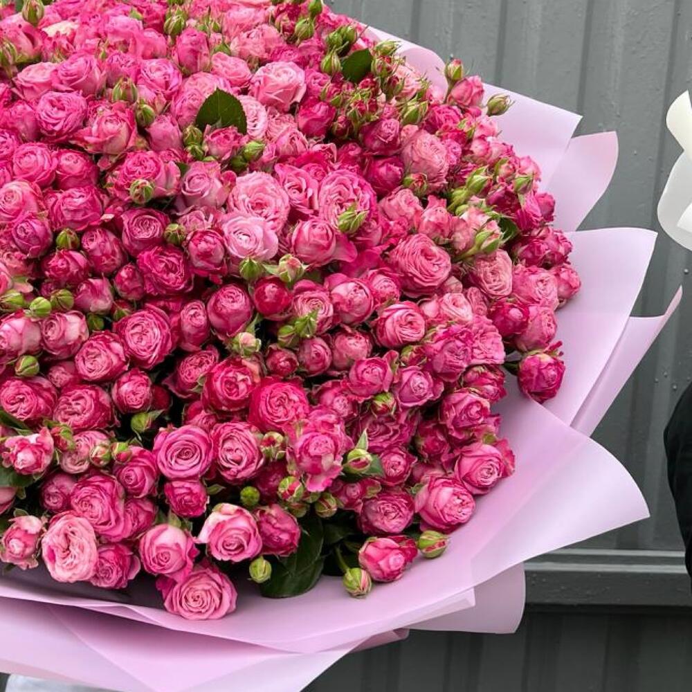 Лента атласная - 2 шт. Роза Леди Бомбастик - 101 шт. Упаковка дизайнерская - 4 шт.