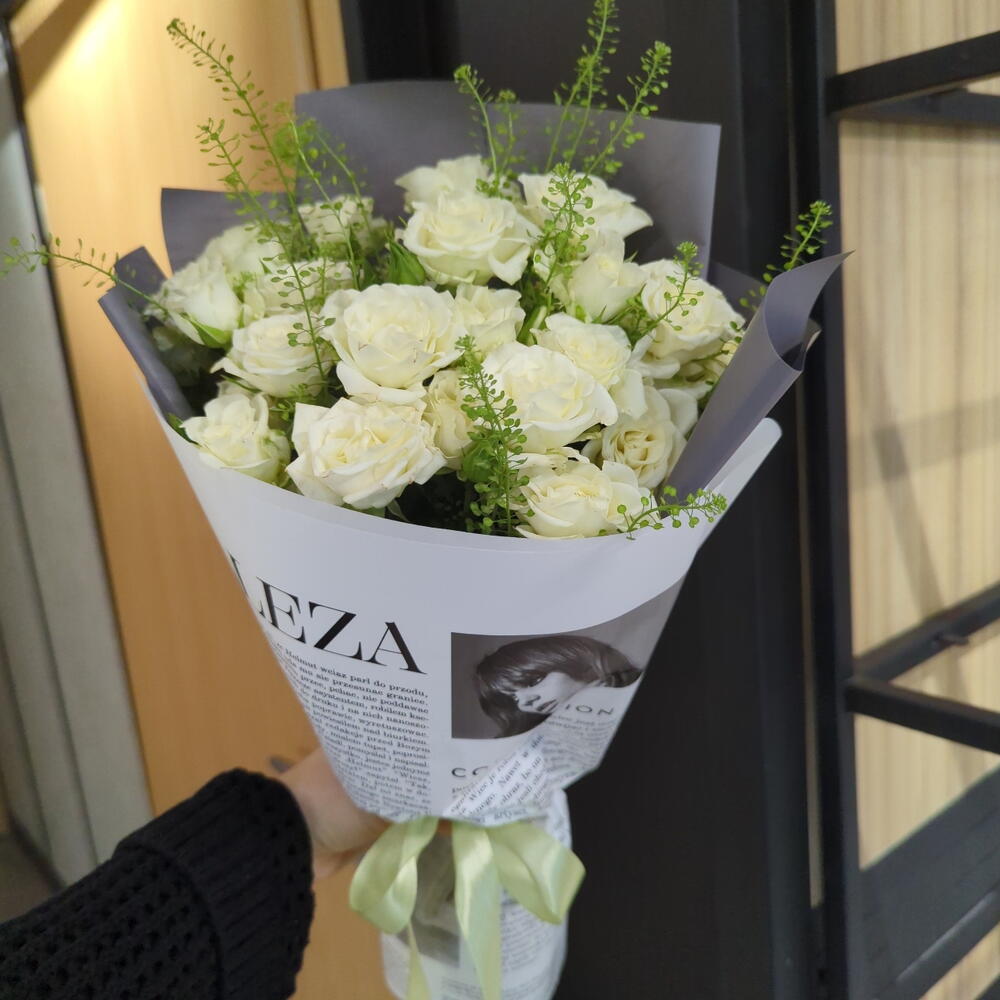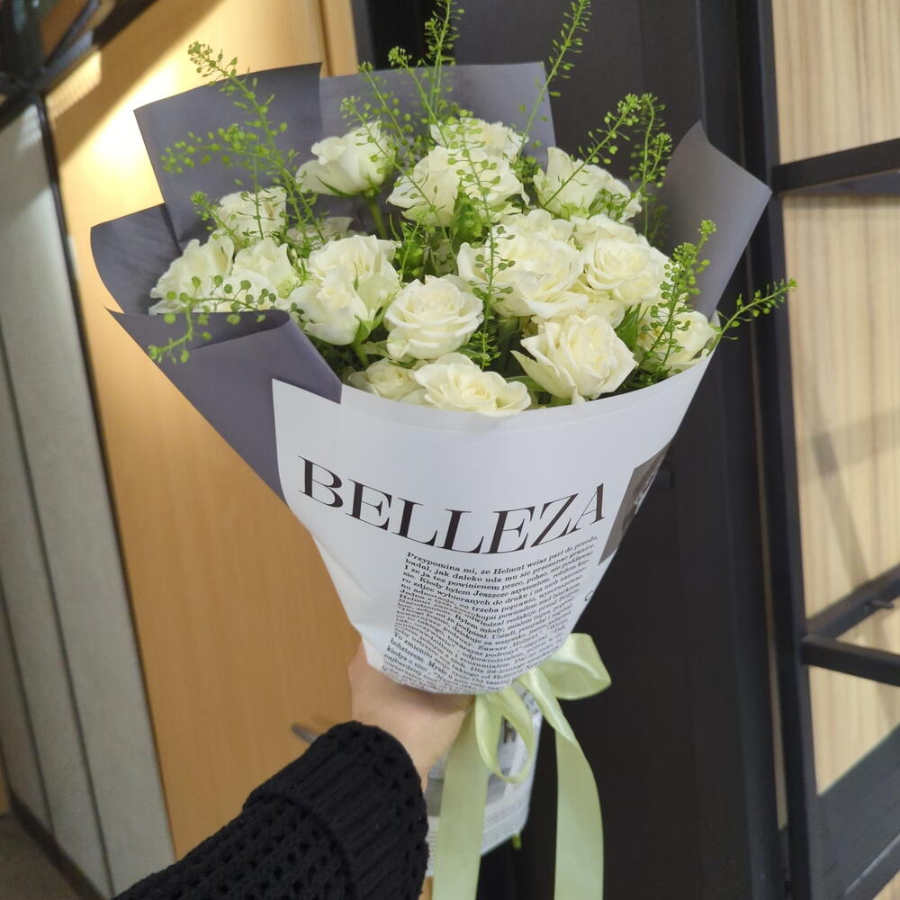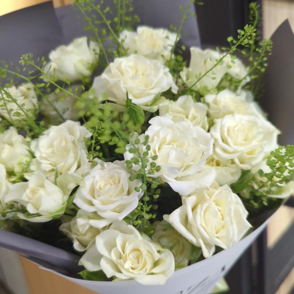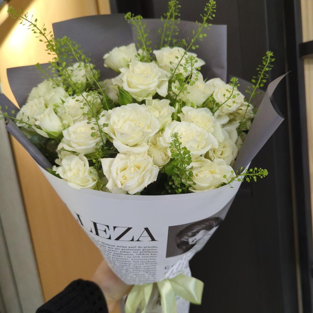 Тласпи - 3 шт. Кустовая роза - 9 шт. Упаковка дизайнерская - 1 шт.
