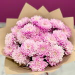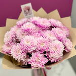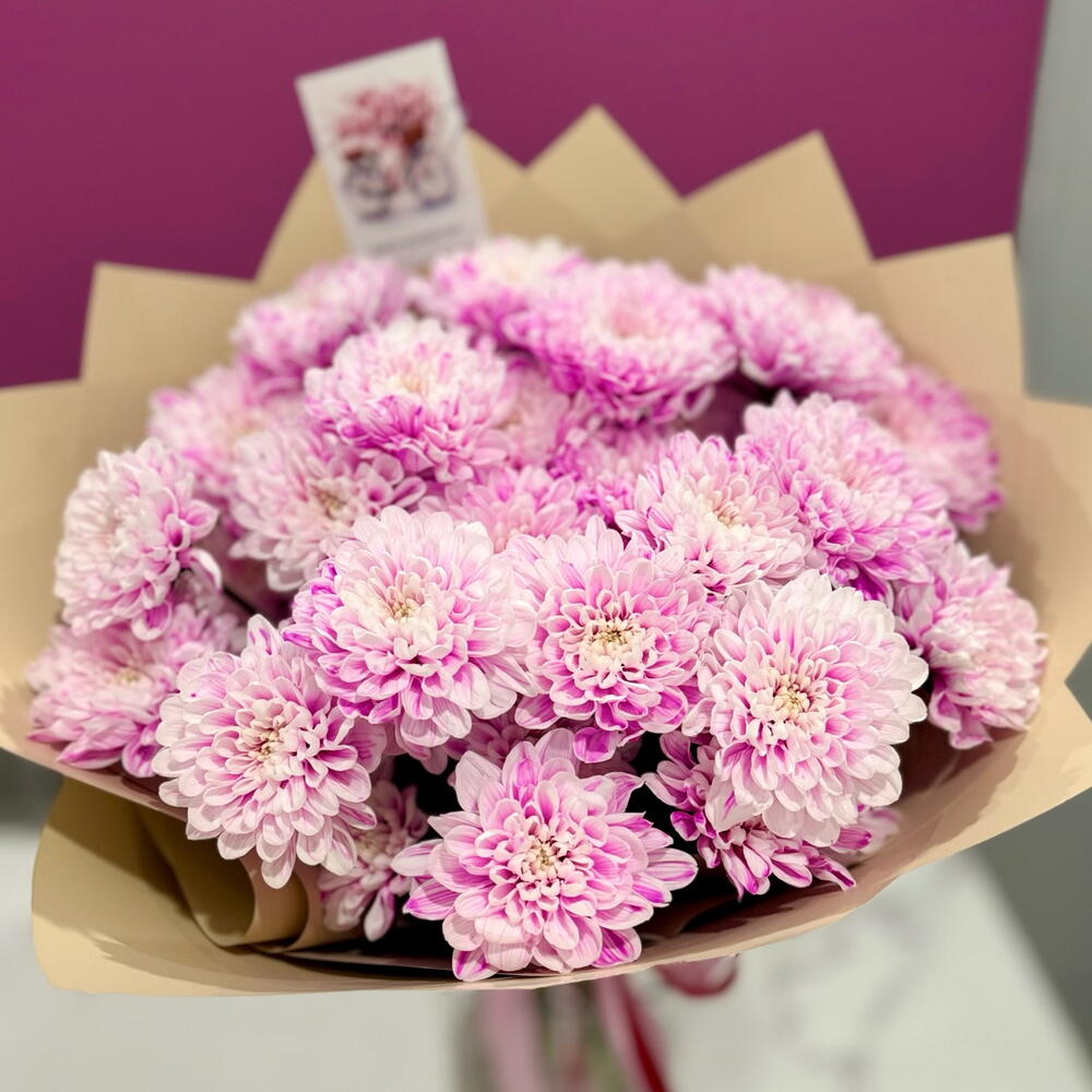 Хризантема кустовая - 5 шт. Упаковка дизайнерская - 1 шт. Открытка мини - 1 шт.