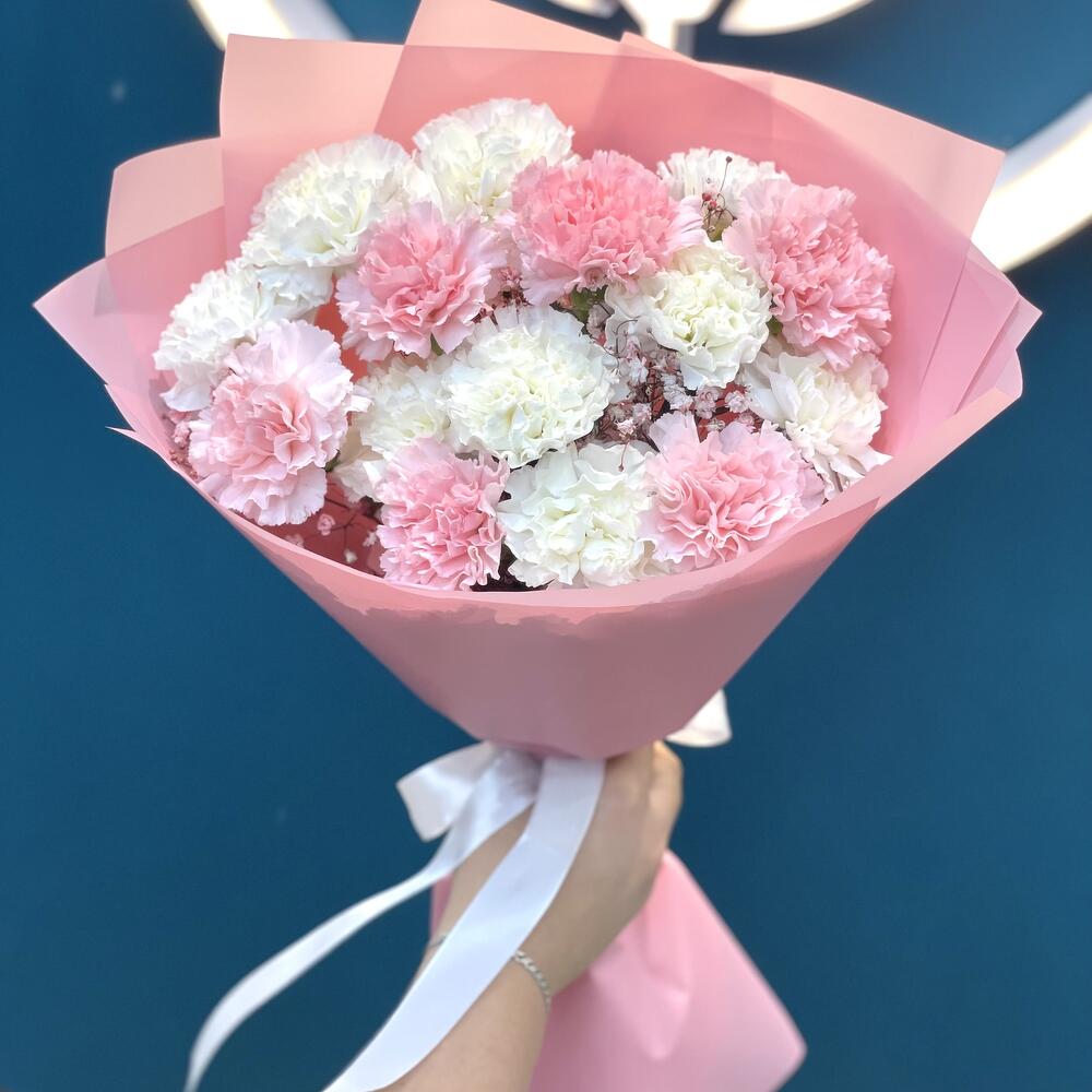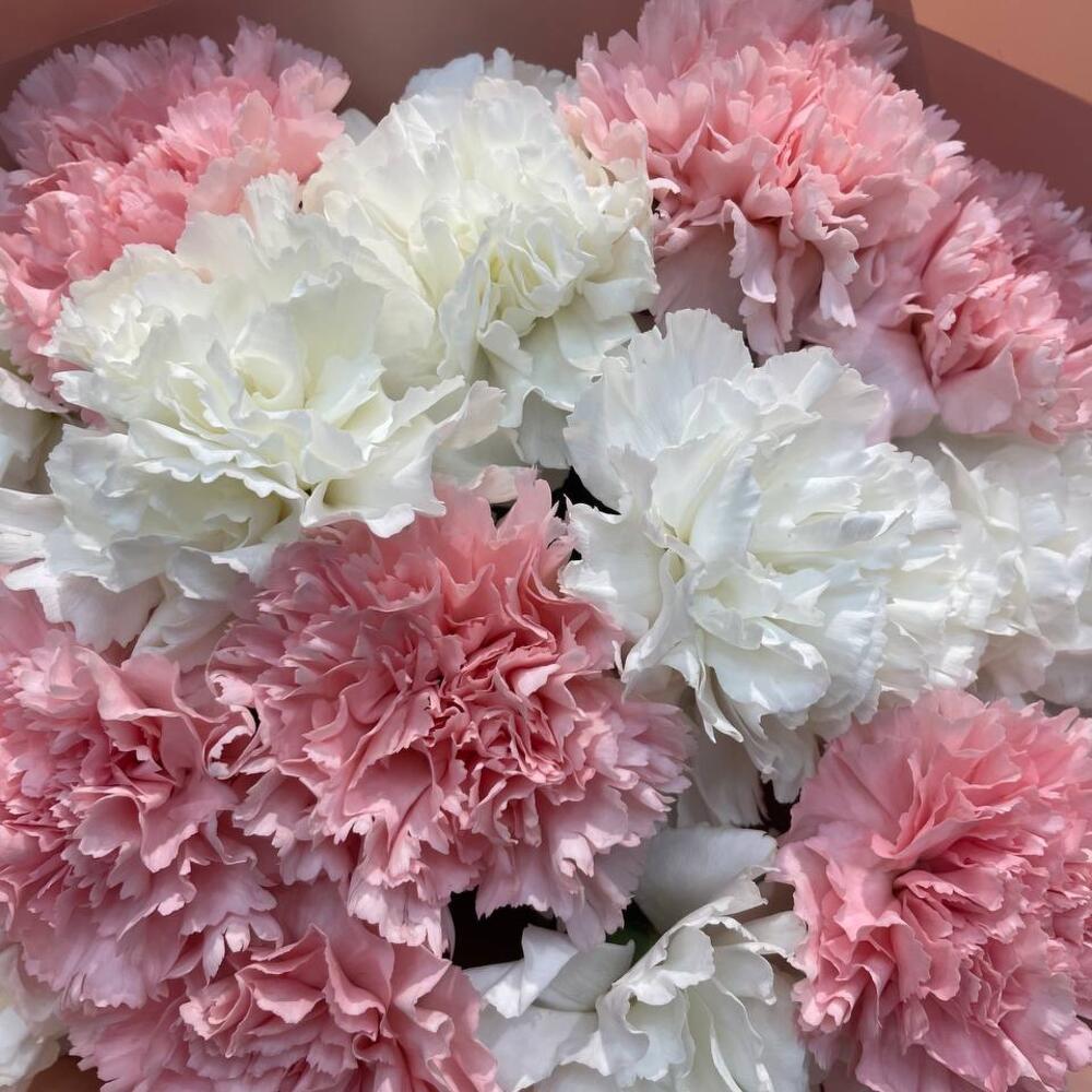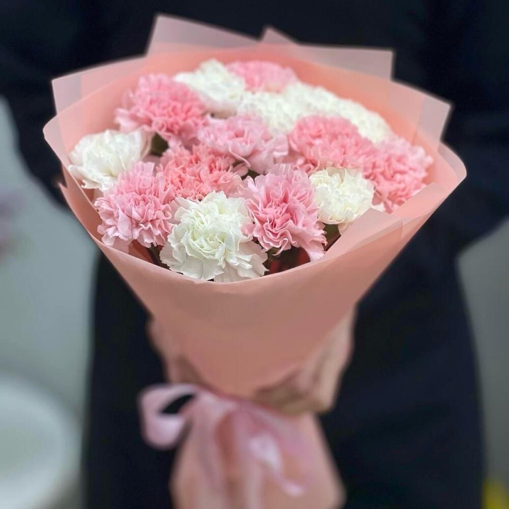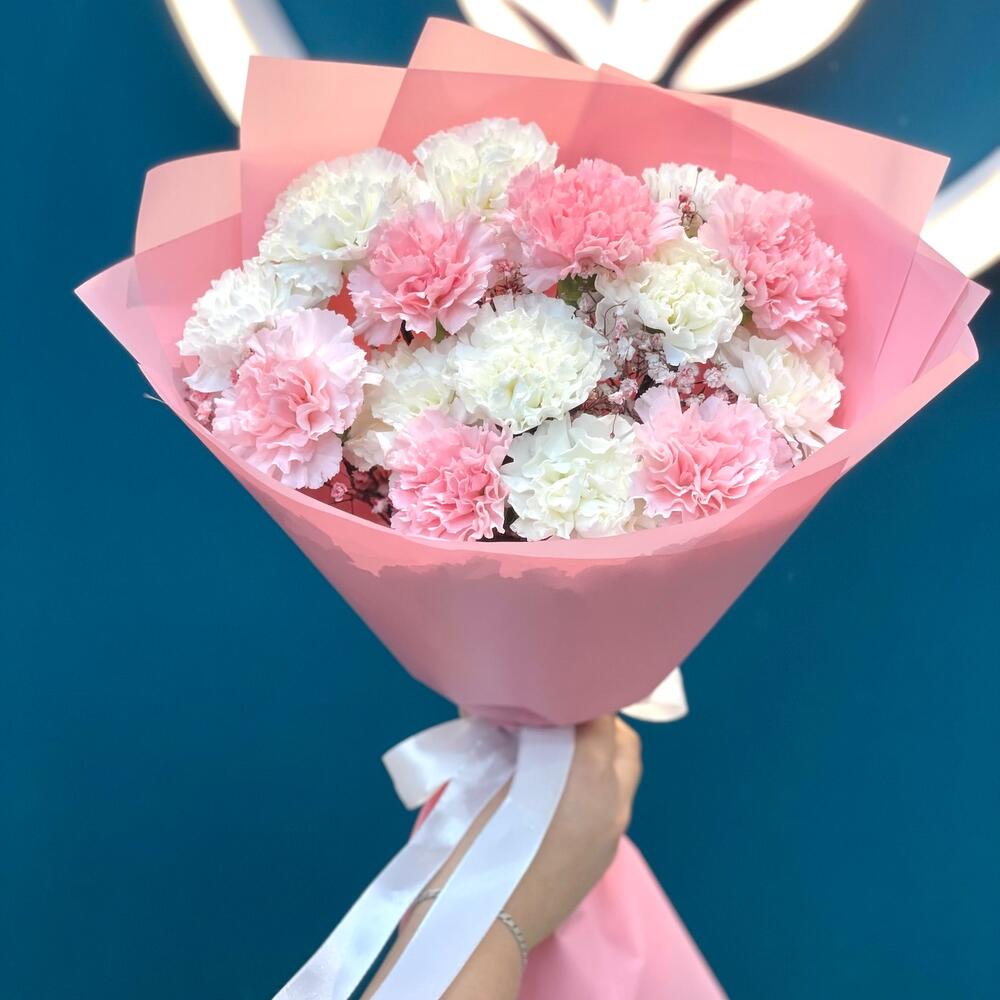 Лента - 2 шт. Диантус белый - 7 шт. Диантус розовый - 8 шт. Матовая упаковка - 2 шт.