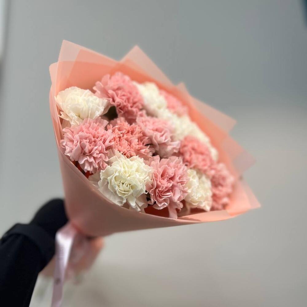 Представляем вашему вниманию великолепный букет из нежных цветов, созданный профессиональными флористами. Это идеальный подарок для любого торжества: дня рождения, годовщины, свадьбы или просто как знак внимания близкому человеку. Состав композиции🌿 Наши флористы создают каждый букет индивидуально, учитывая сезонность, доступность цветов и ваши пожелания. Мы можем дополнить композицию приятными сюрпризами: • Конфетами Rafaello • Мягкими игрушками • Открытками • Воздушными шарами Важная информация 🪷 Поскольку цветы — это живой материал, возможны незначительные изменения в сортах или оттенках при сохранении общей концепции и настроения композиции.