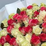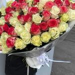 Лента атласная - 1 шт. Открытка - 1 шт. Упаковка дизайнерская - 1 шт. розы микс - 69 шт. отличное настроение - 1000 шт.