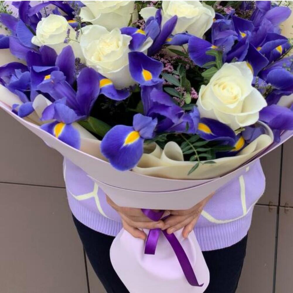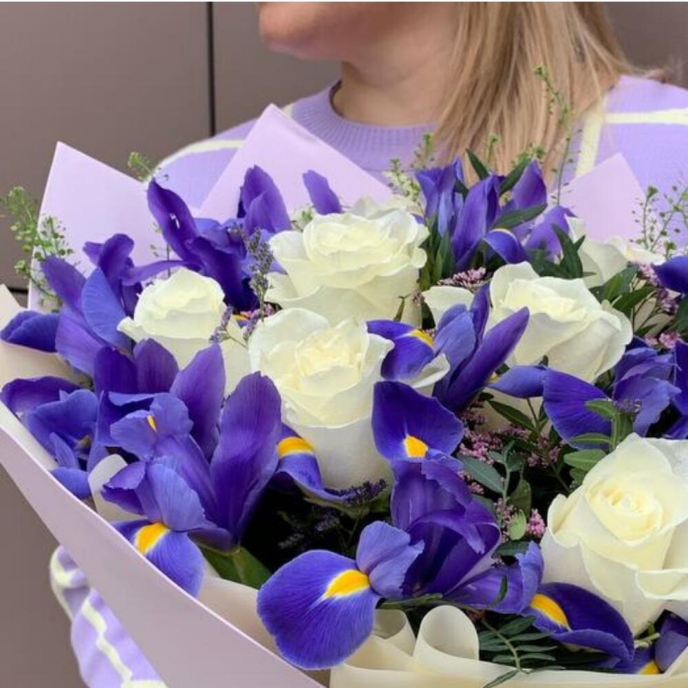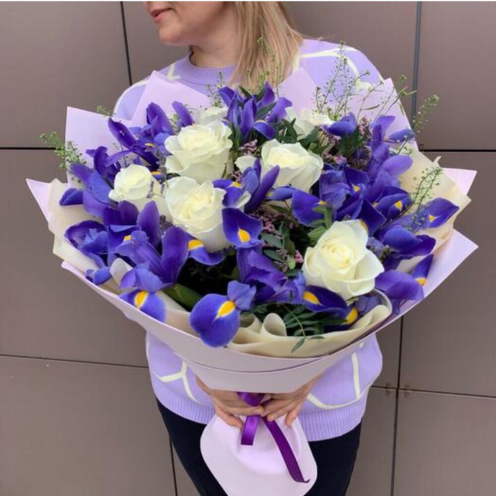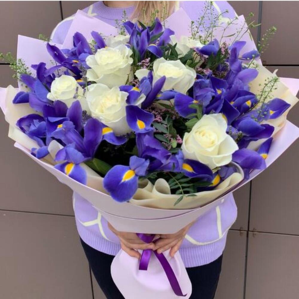 Нереально красивый яркий букет с синими ирисами в чудесном исполнении с белыми розами поднимет настроение и будет долгое время радовать и доставлять массу радости и счастья 😍🥰