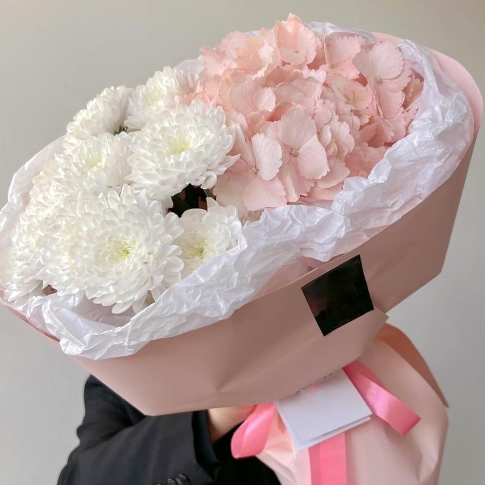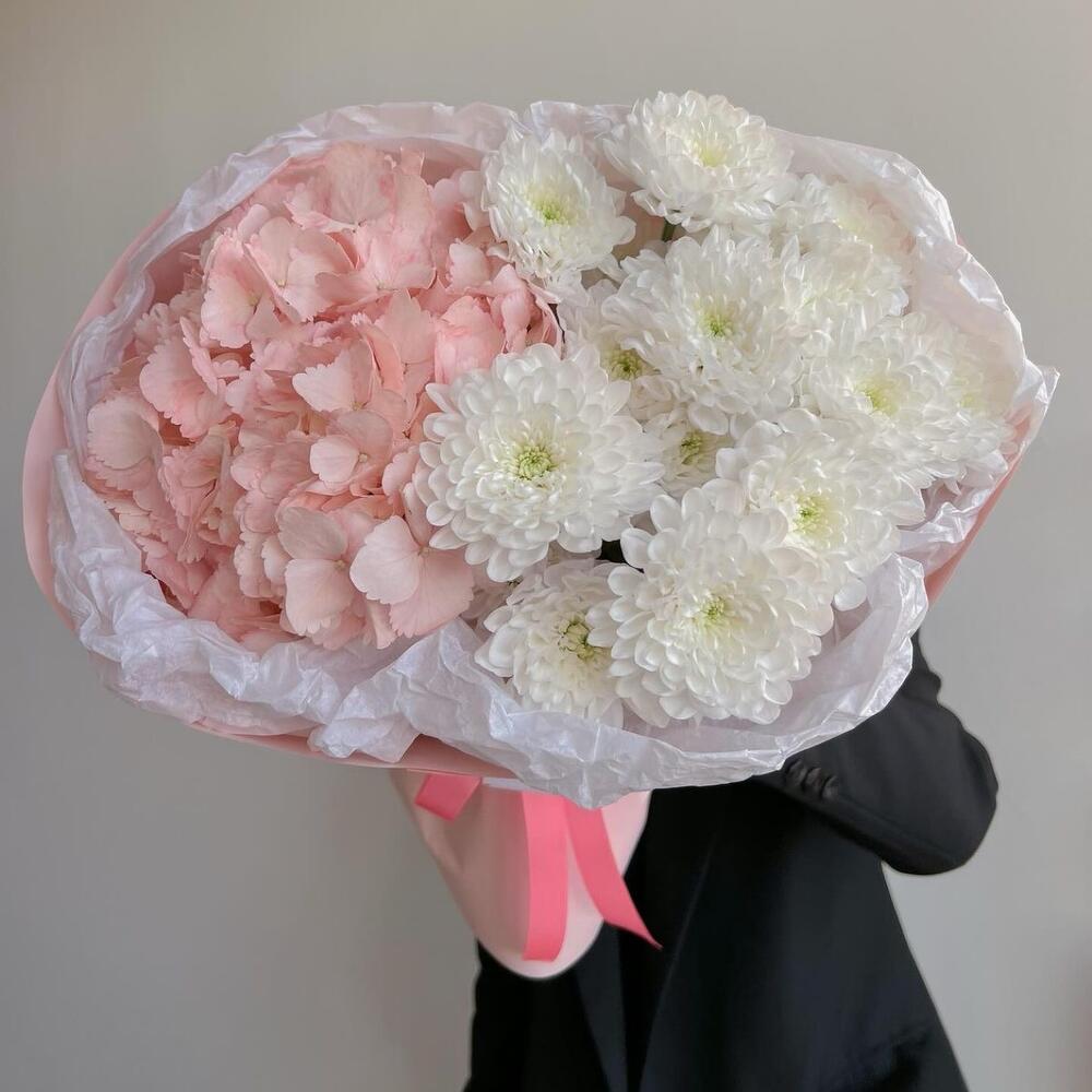 Букет Pink Гортензия с хризантемой 🦩