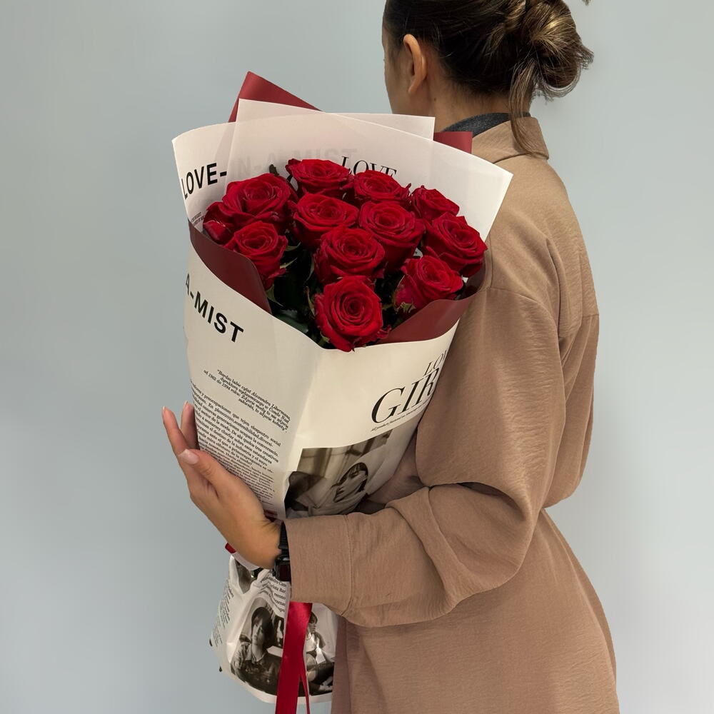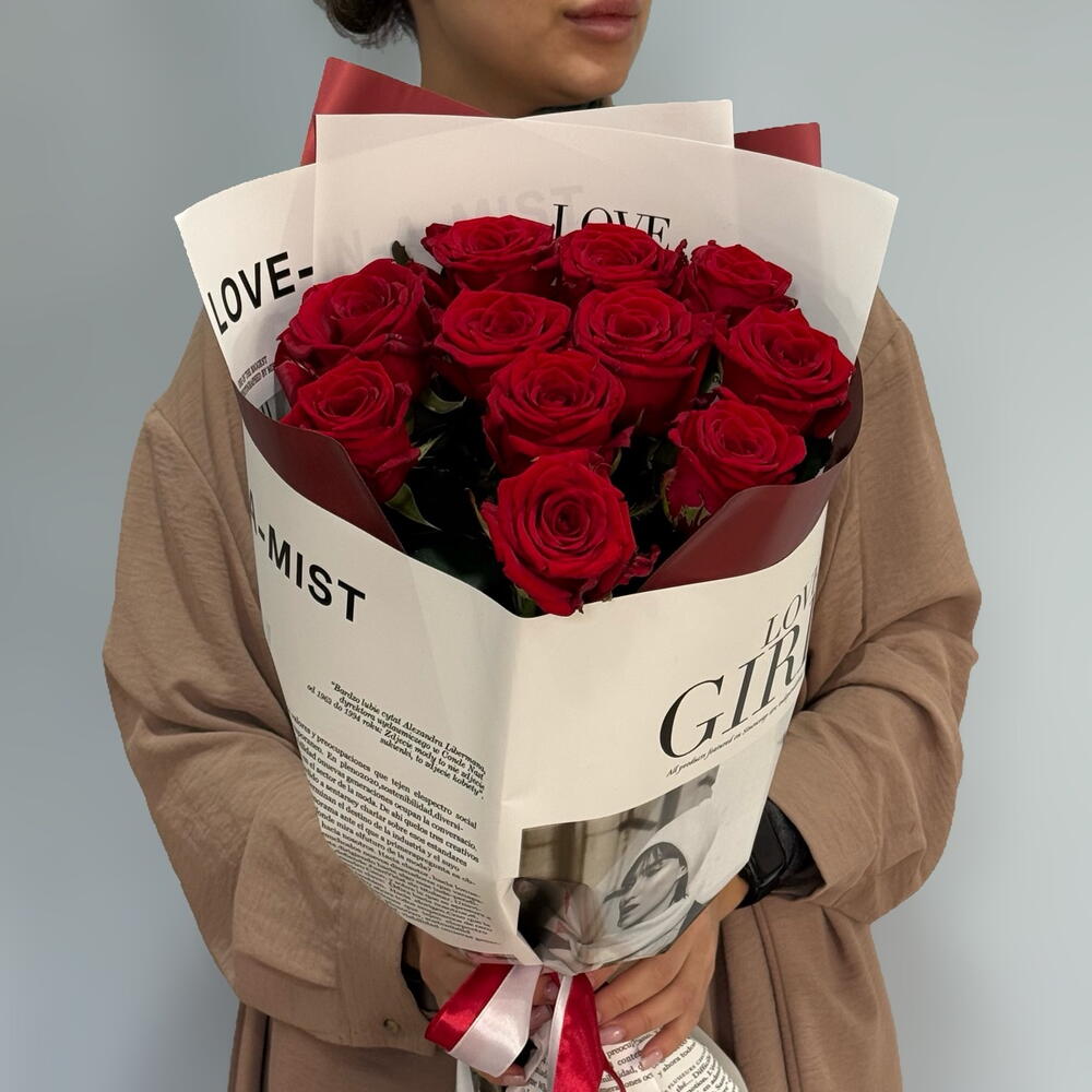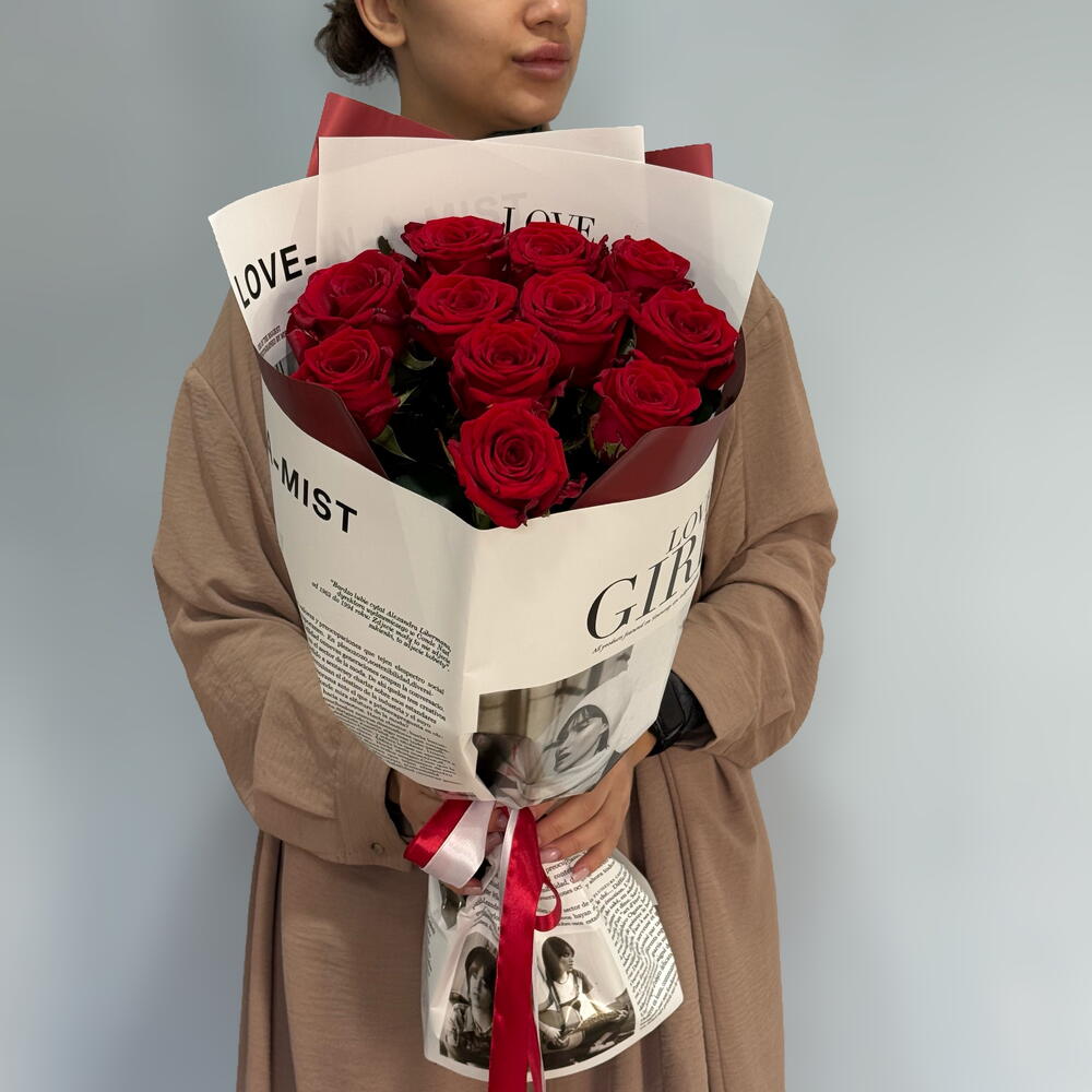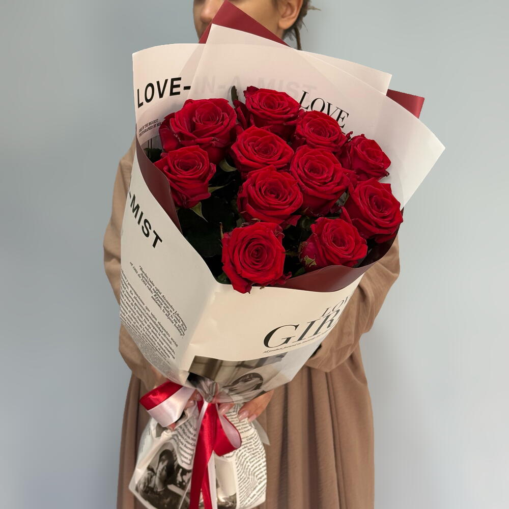 Роза red naomi - 11 шт. авторская упаковка с лентой - 1 шт.
