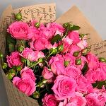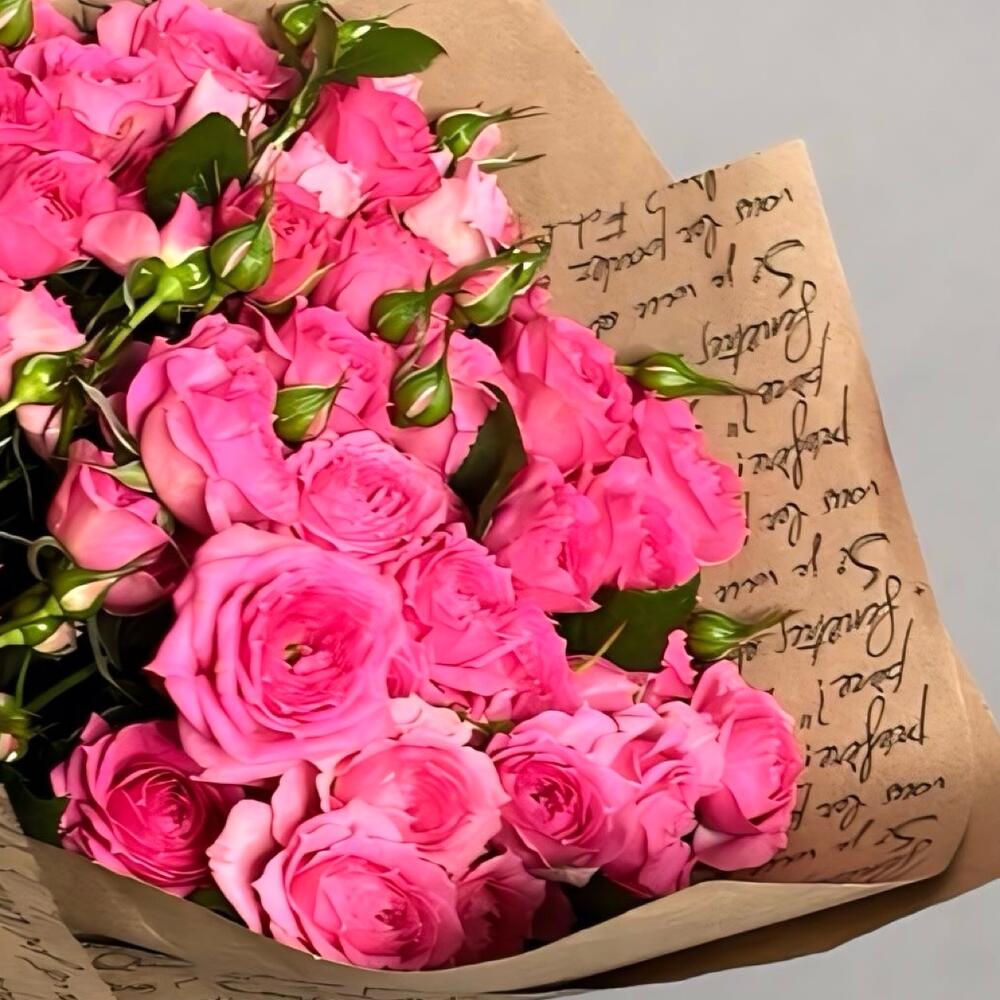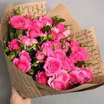 Букет из 10 веток розовых кустовых роз в крафтовой упаковке. За счет невероятной работы наших флористов, букет подходят для любого повода, чтобы порадовать вашу девушку, жену, маму, коллегу, бабушку, сестру или просто знакомую. Не упускайте возможность сделать приятно своим близким