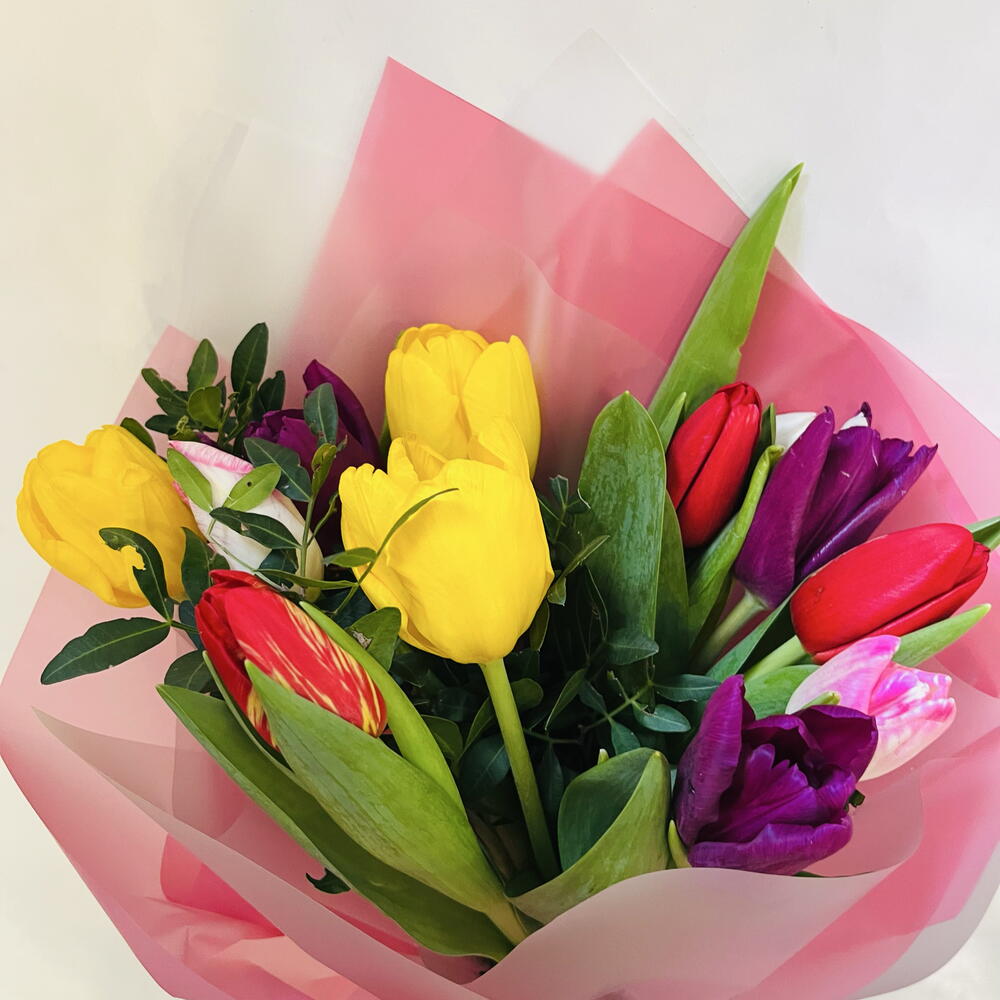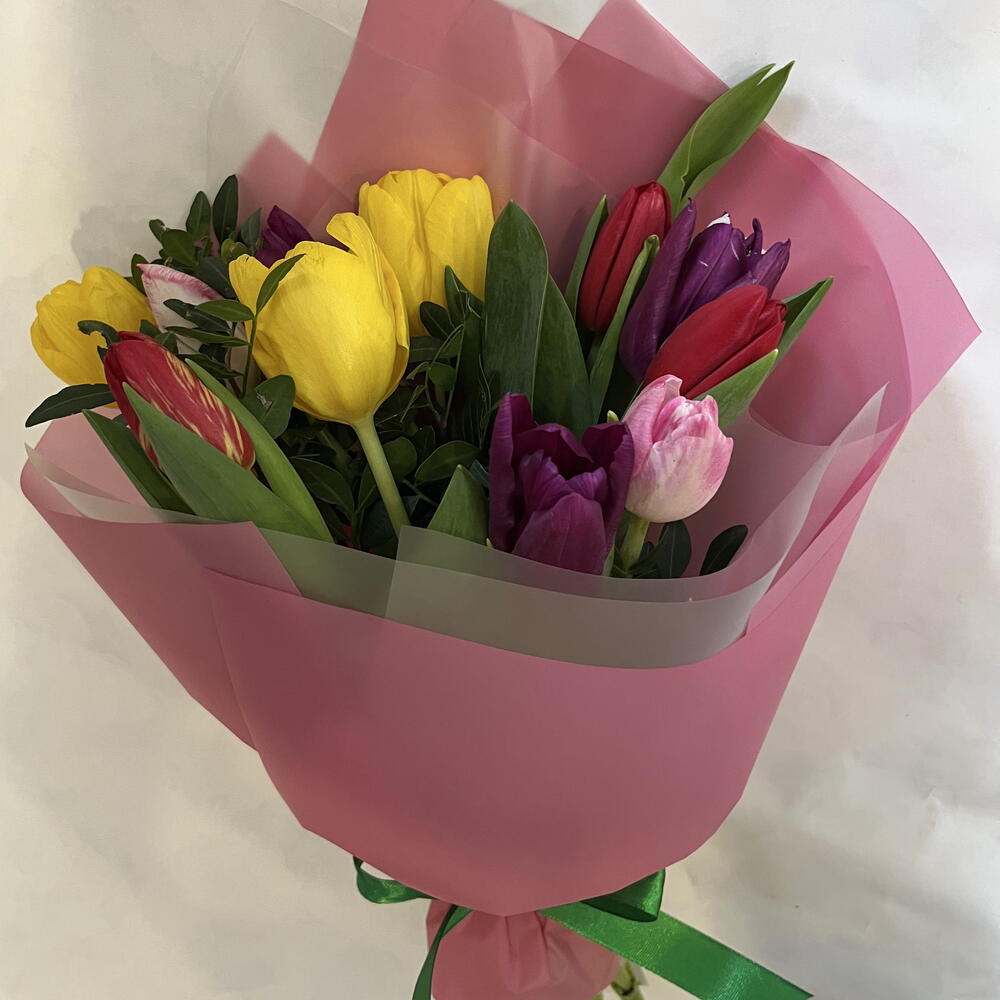 Букет с 15 тюльпанами микс