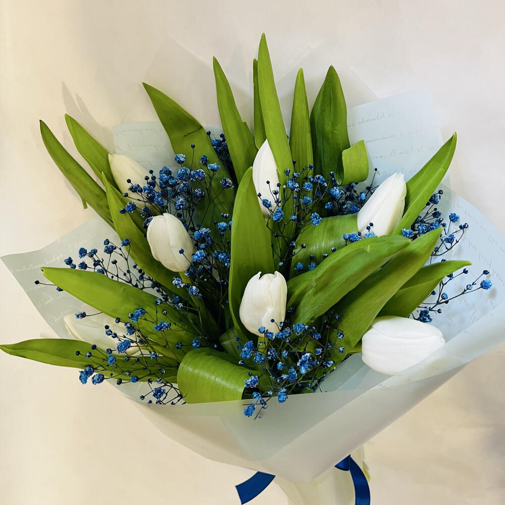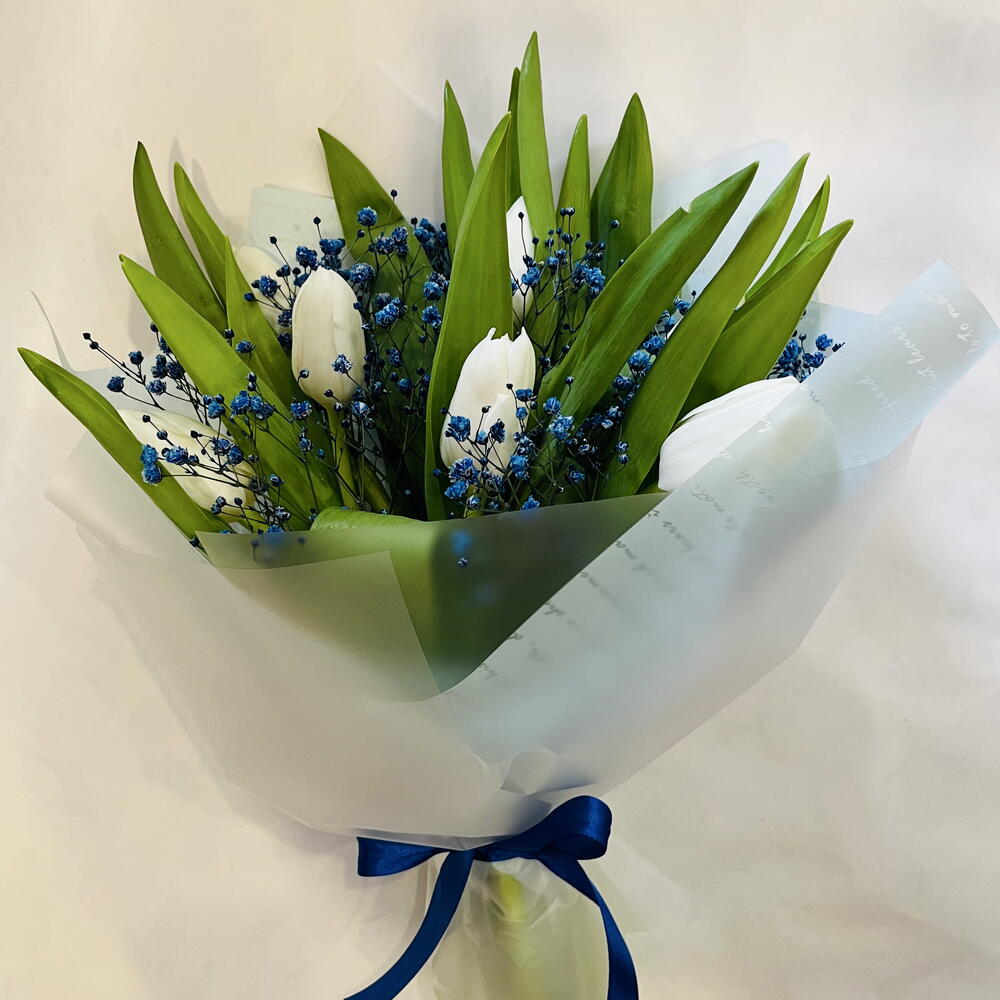 Гипсофила - 2 шт. Тюльпан - 7 шт.