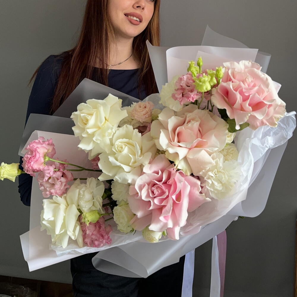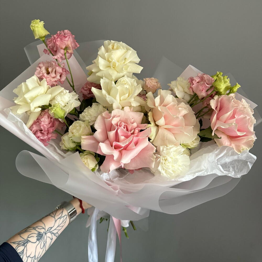 Кустовая роза - 3 шт. Гвоздика - 5 шт. Роза французская - 6 шт.