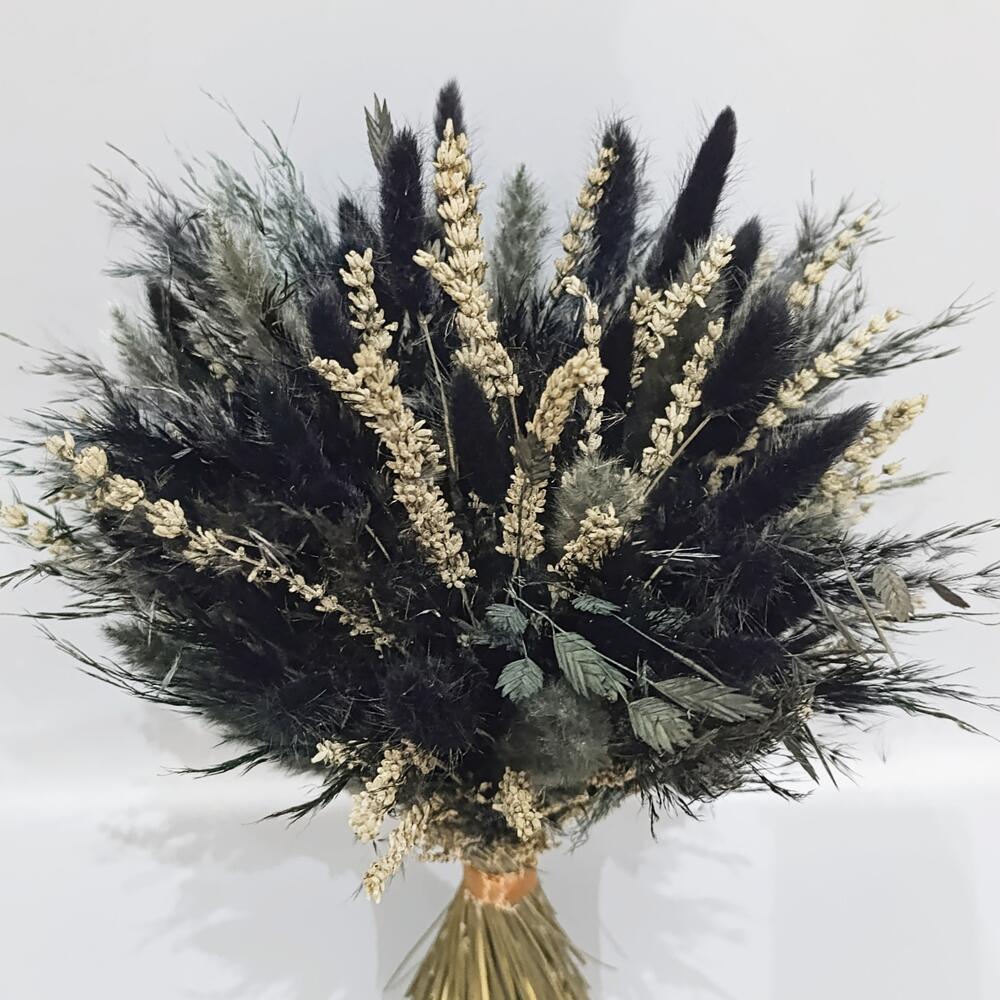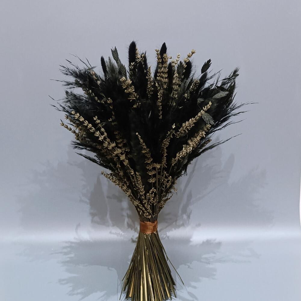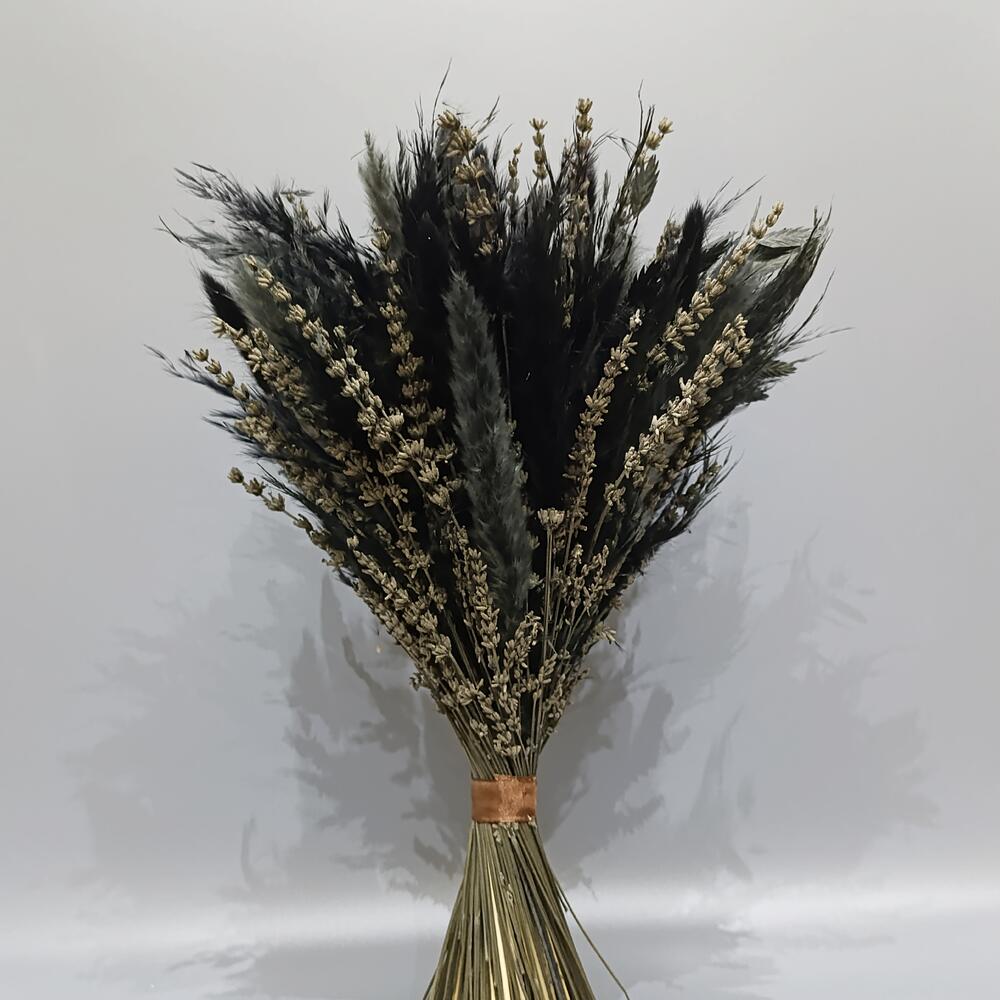 Лаванда пучок - 1 шт. Хасмантиум - 3 шт. пампасная трава - 3 шт. каркас ручной работы - 1 шт. лента декоративная - 1 шт.