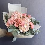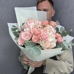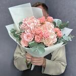 Букет из розовых гортензий и пионовидных роз Бомбастик