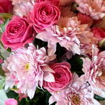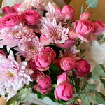 Роза кустовая пионовидная - 5 шт. Открыточка с вашими пожеланиями - 1 шт. Эвкалипт Цинерея - 1 шт. Средство для продления жизни цветов - 1 шт. упаковка транспортировочная - 1 шт. Хризантема кустовая Пастела Роуз - 4 шт. упаковка матовая корейская пленка - 1 шт.