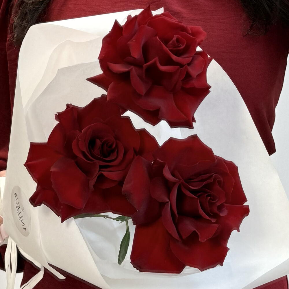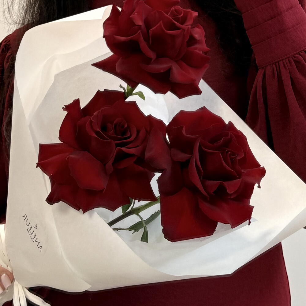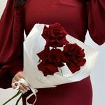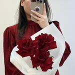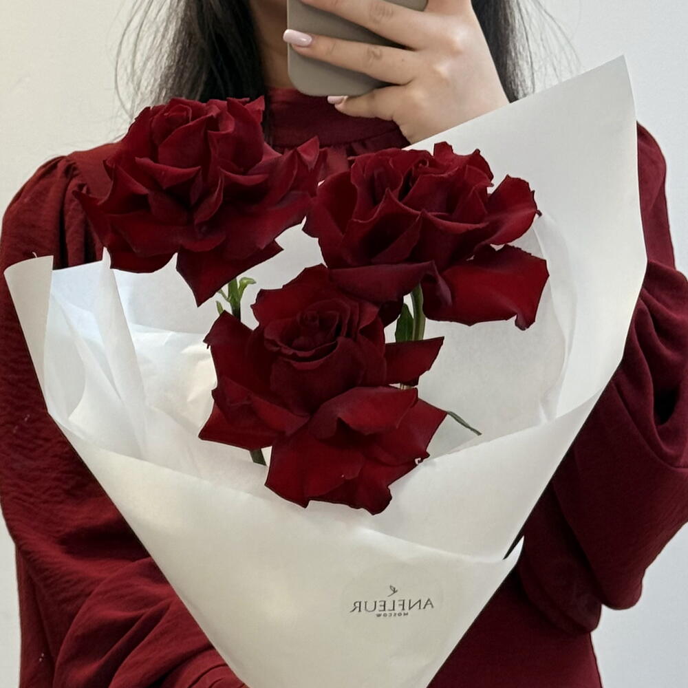 Лента - 1 шт. Открыточка с вашими пожеланиями - 1 шт. Транспортировочная коробка - 1 шт. Упаковка бумага - 1 шт. подкормка для срезанных цветов - 1 шт. инструкция по уходу за цветами - 1 шт. аквапак с водой - 1 шт. французские розы - 3 шт.