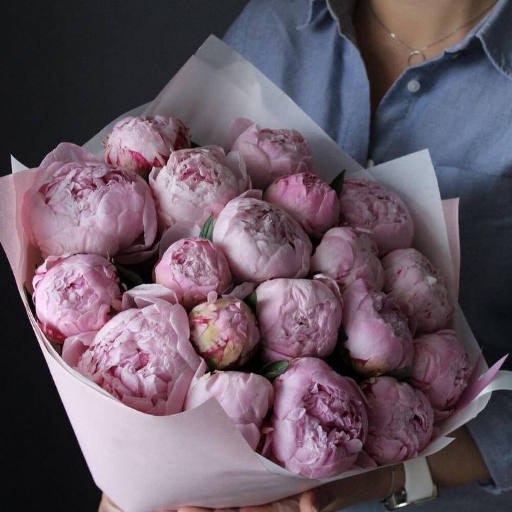Пион - 21 шт. Лента атласная - 1 шт. Упаковка дизайнерская - 1 шт.