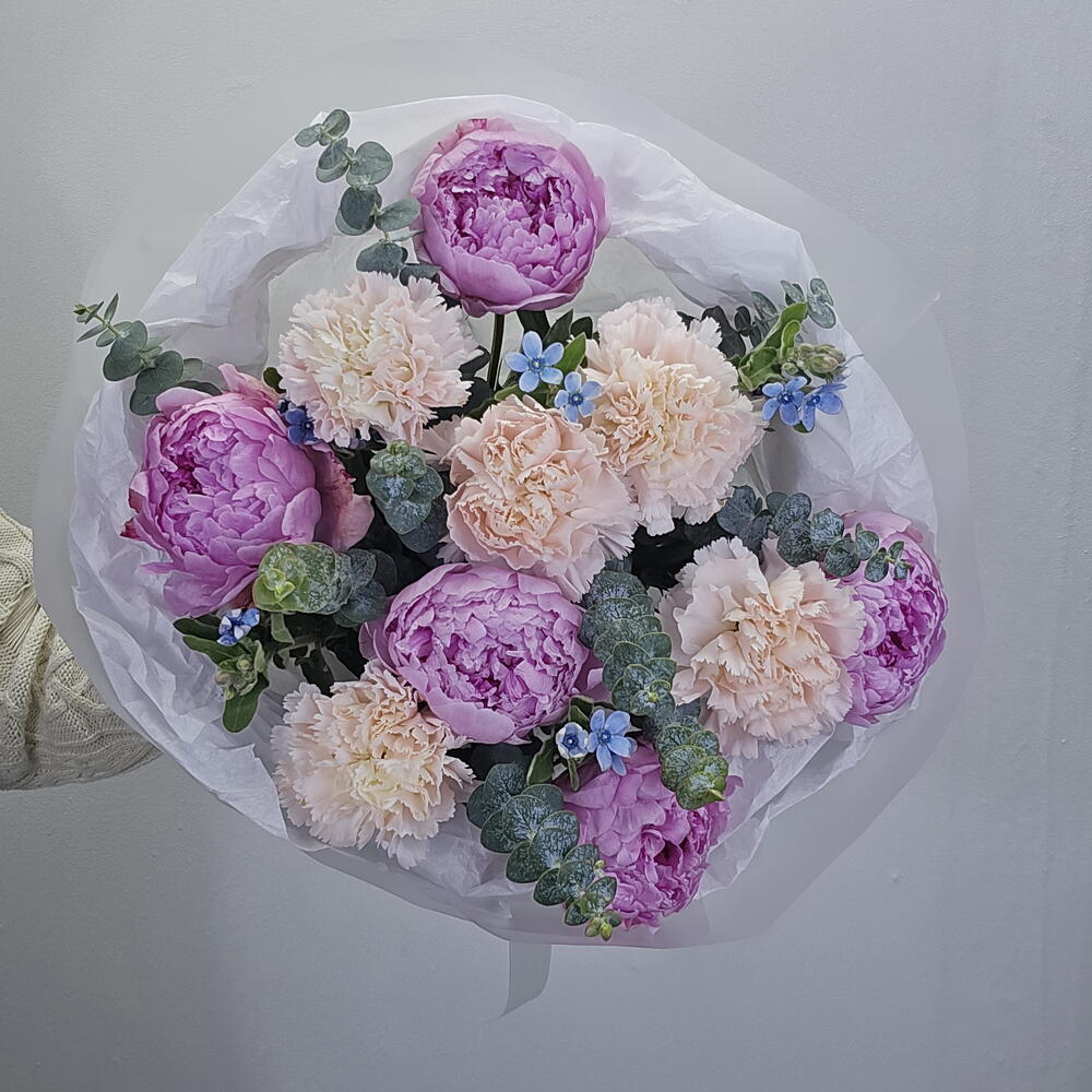 Букет с пионами и с незабудками