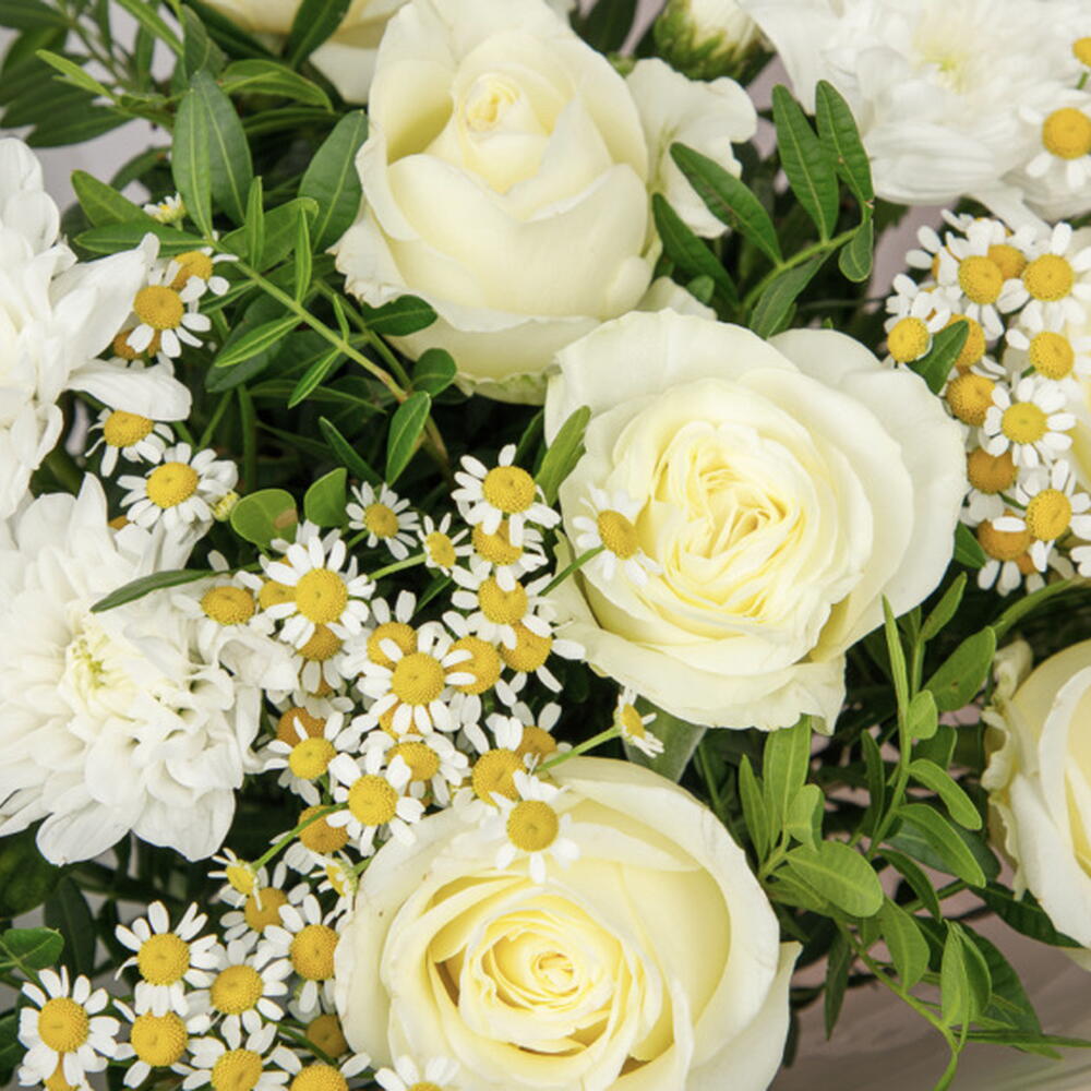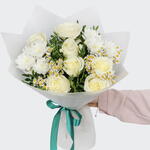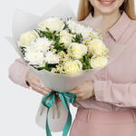 Танацетум - 2 шт. Хризантема кустовая - 2 шт. Роза 40 см - 7 шт. фисташка зелень - 1 шт.