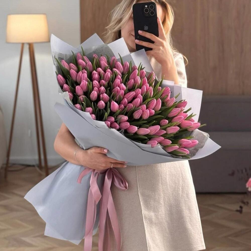Розовые тюльпаны создают ощущение весеннего цветения. Эта красота точно тронет сердце вашей избранницы. Цветы хранятся в оптимальных условиях для сохранения свежести. Привлекательная упаковка гарантирует безупречную презентабельность. Хочется видеть качество своими глазами? • Получите фотографию своего заказа перед вручением. • Наши мастера работают исключительно вручную. Показывайте свою любовь искренне и ярко.