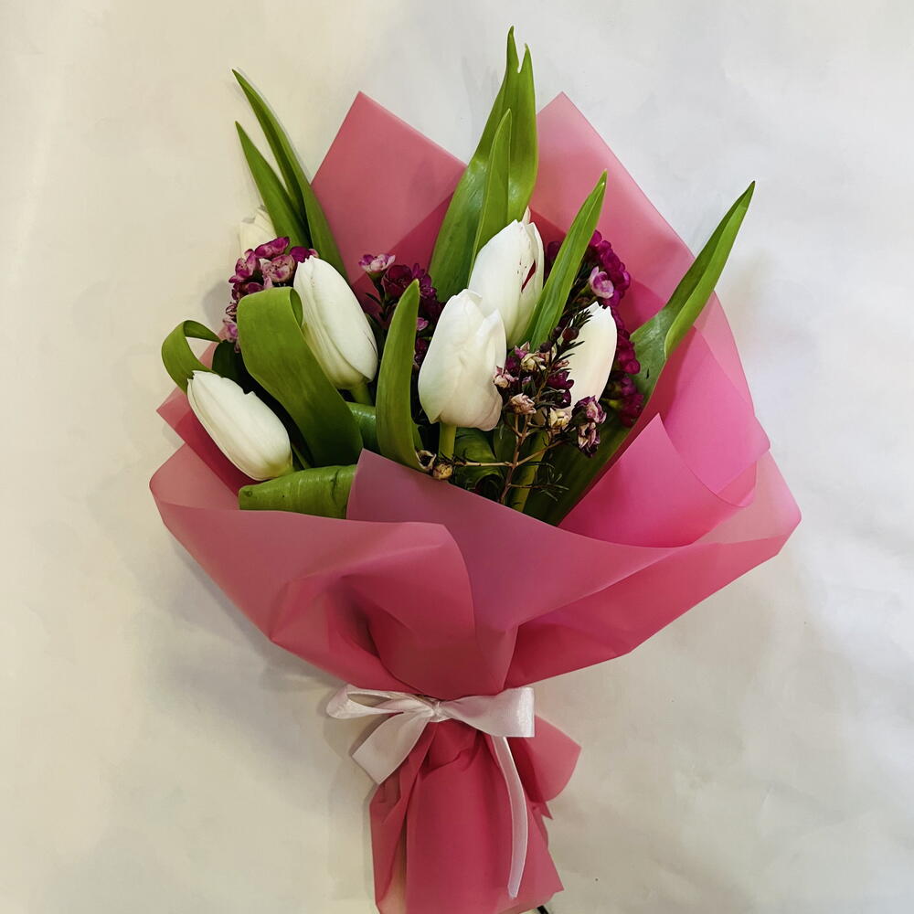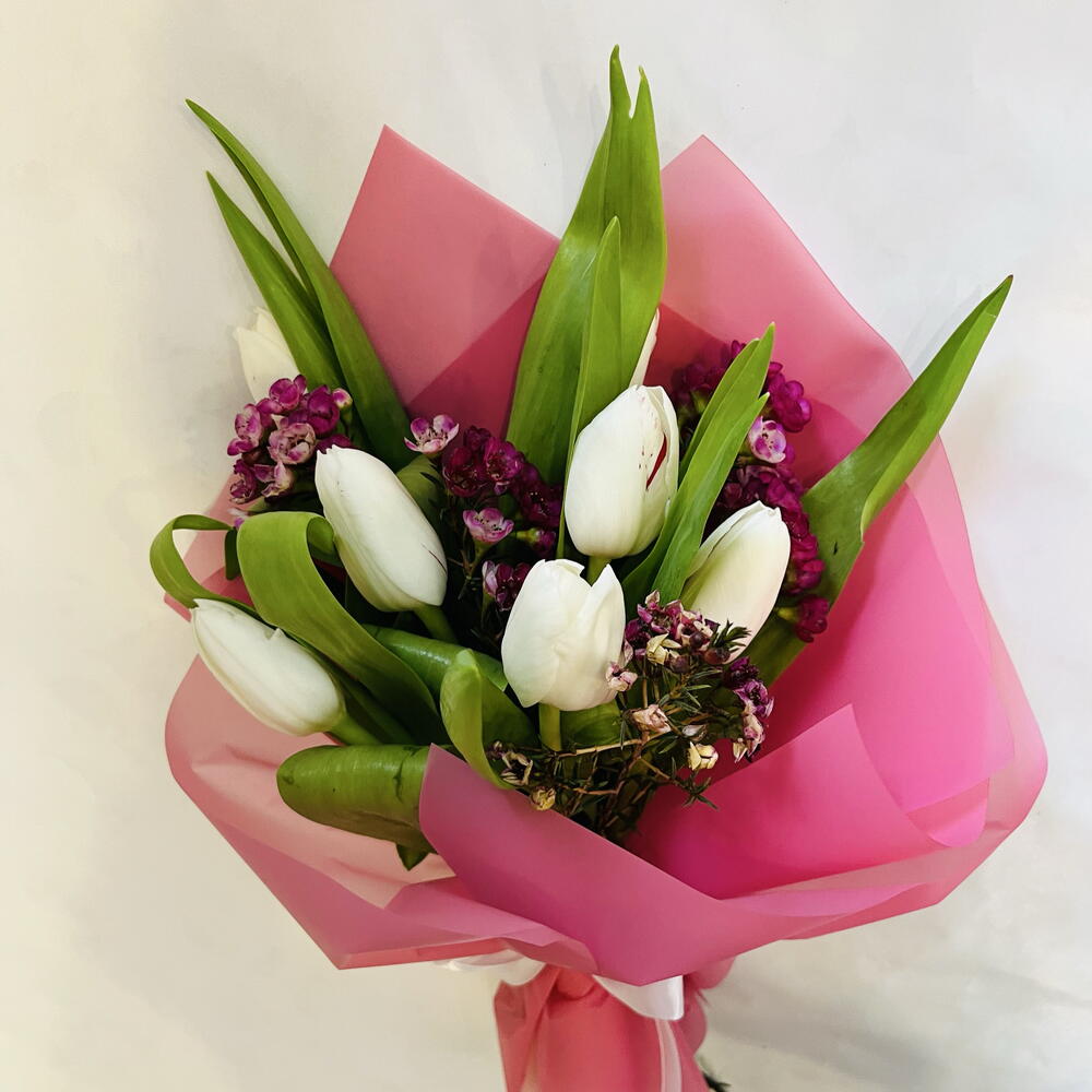 Тюльпан - 5 шт. шамелациум - 2 шт.