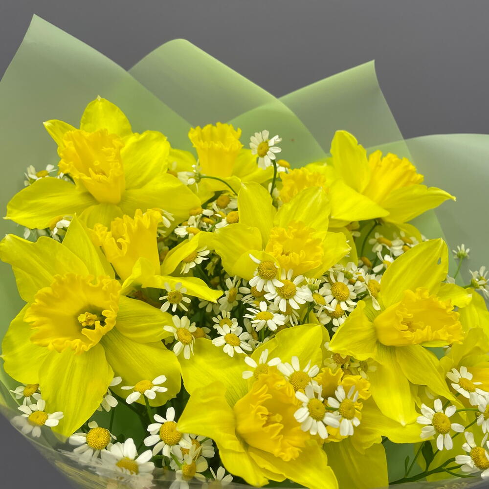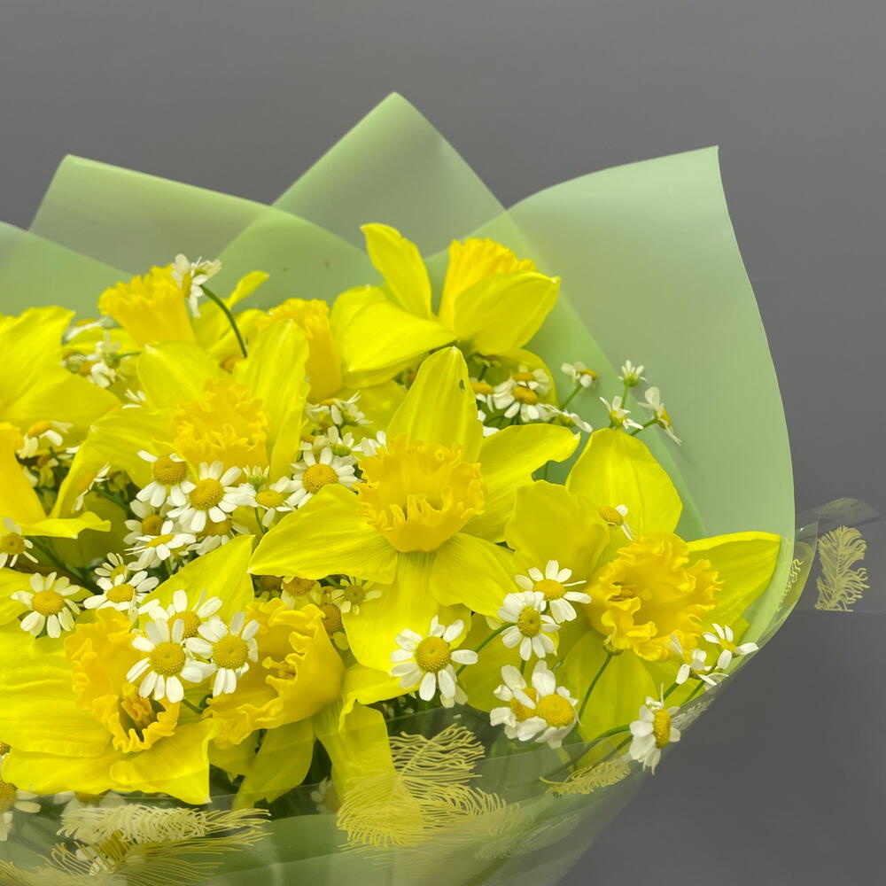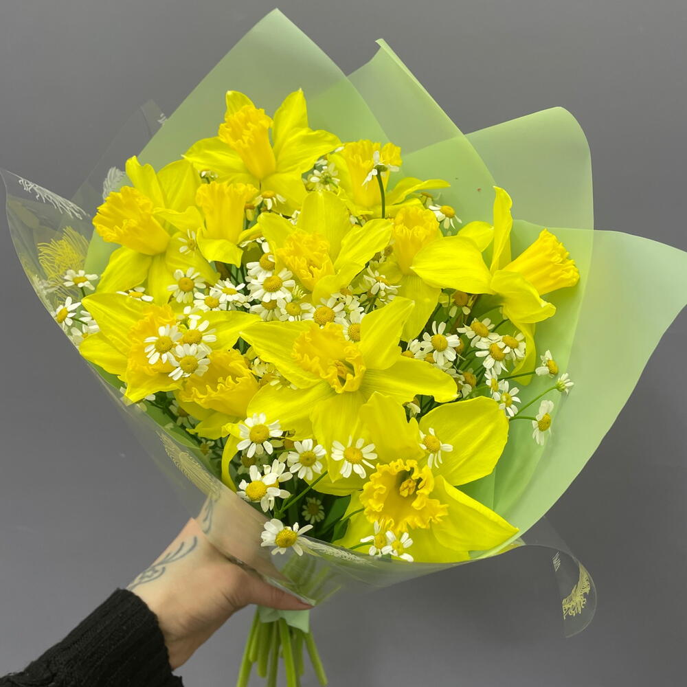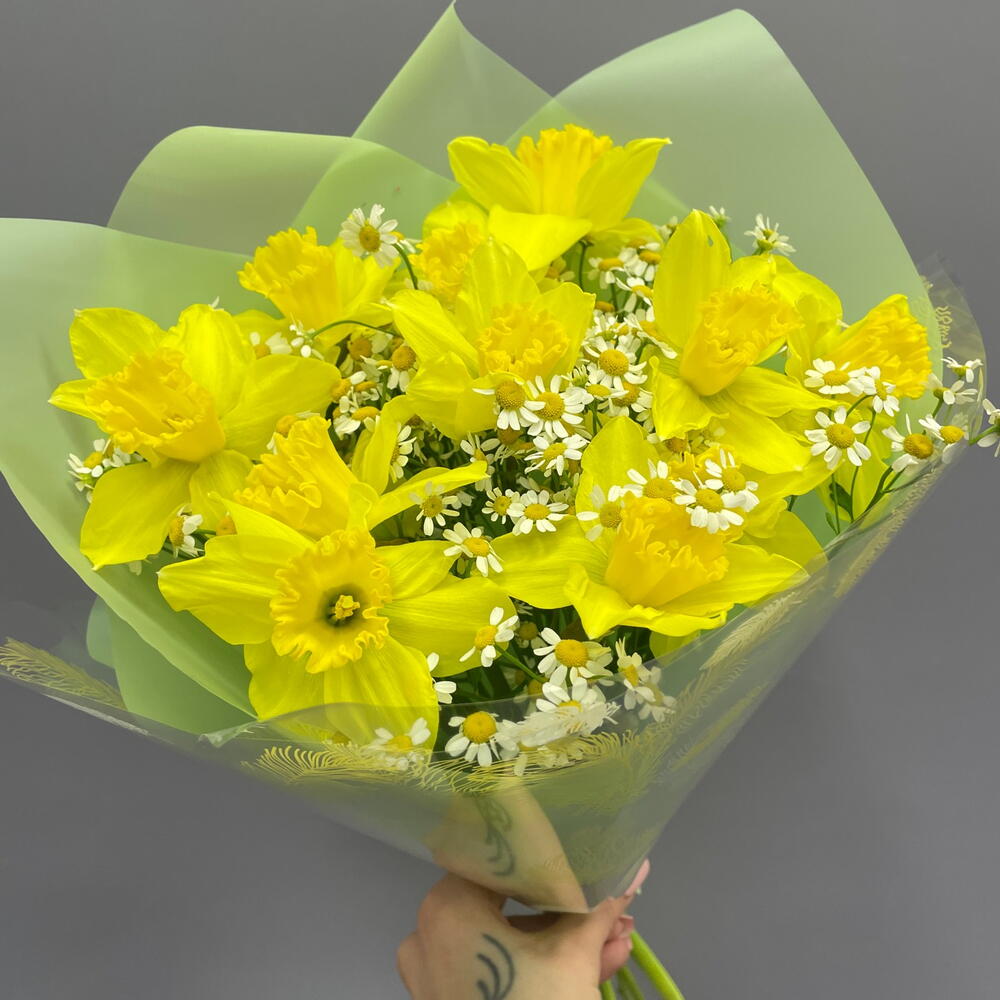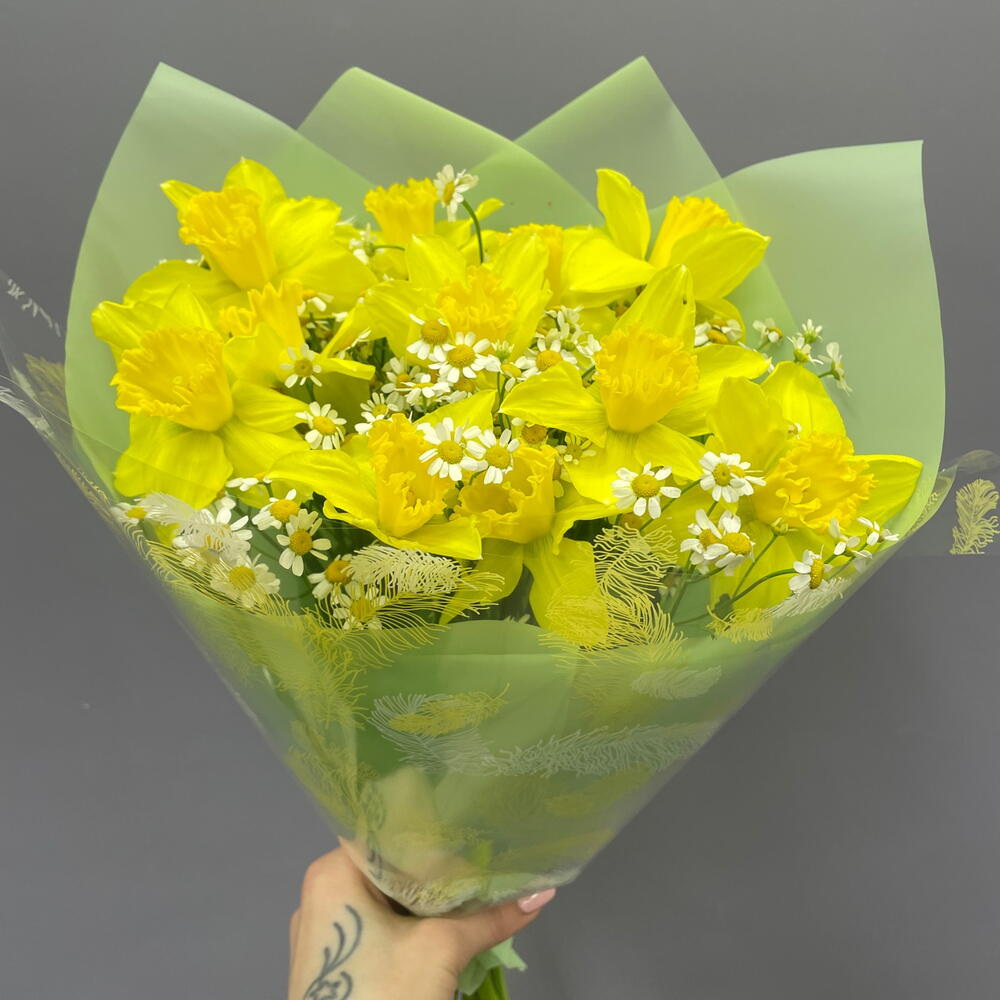 Нарцисс - 11 шт. Танацетум - 4 шт. Упаковка дизайнерская - 1 шт.