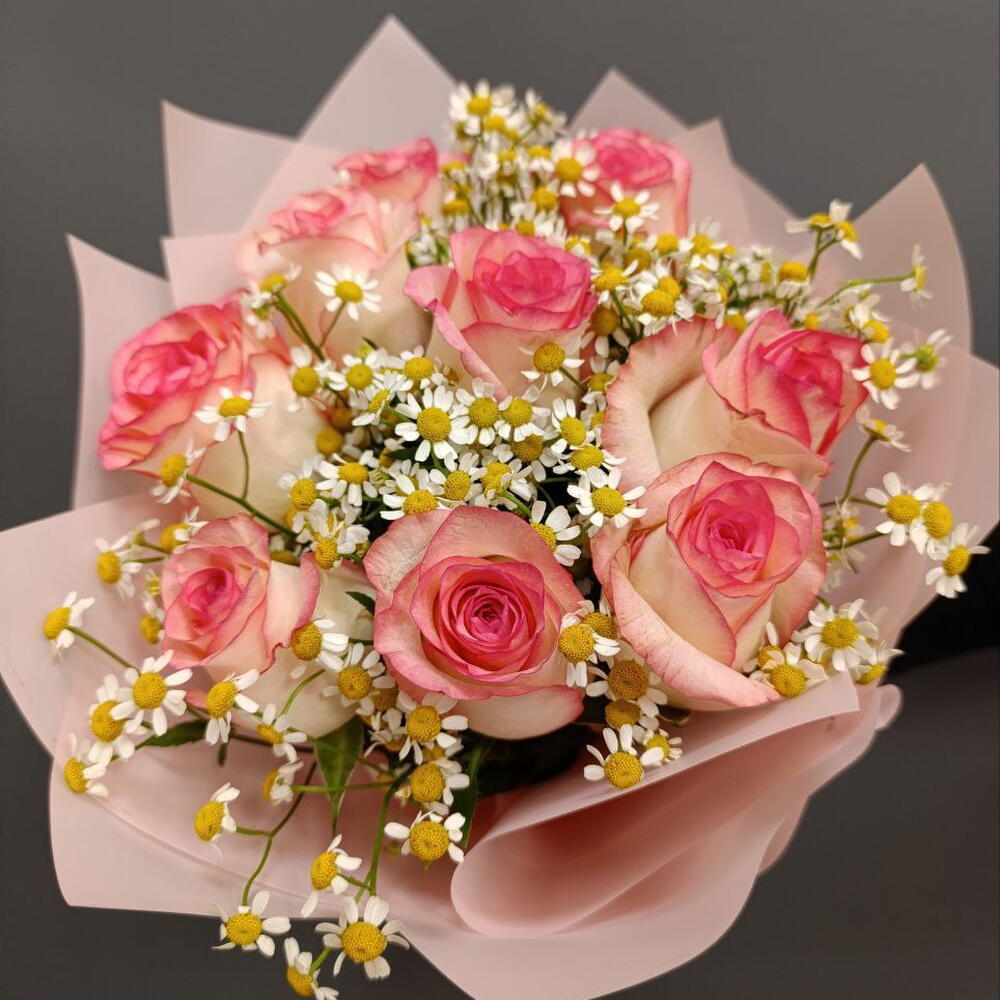 Ромашка полевая - 5 шт. роза микс - 9 шт.