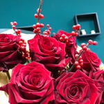 Букет из эквадорских роз и ветки Илекса
