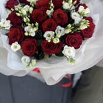 Букетик из 17 роз и эустомы