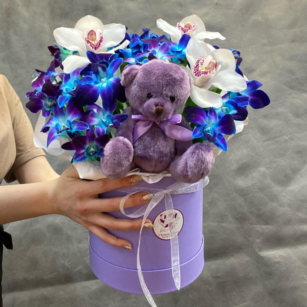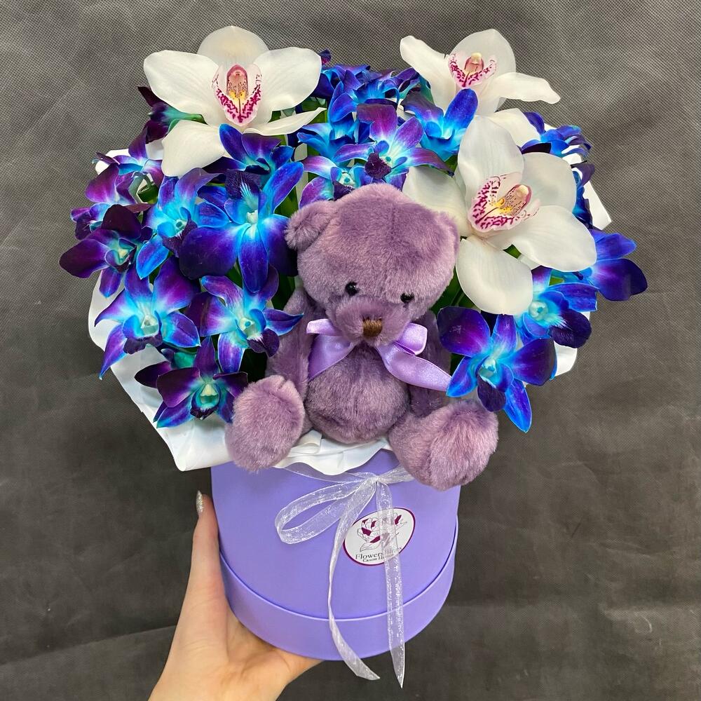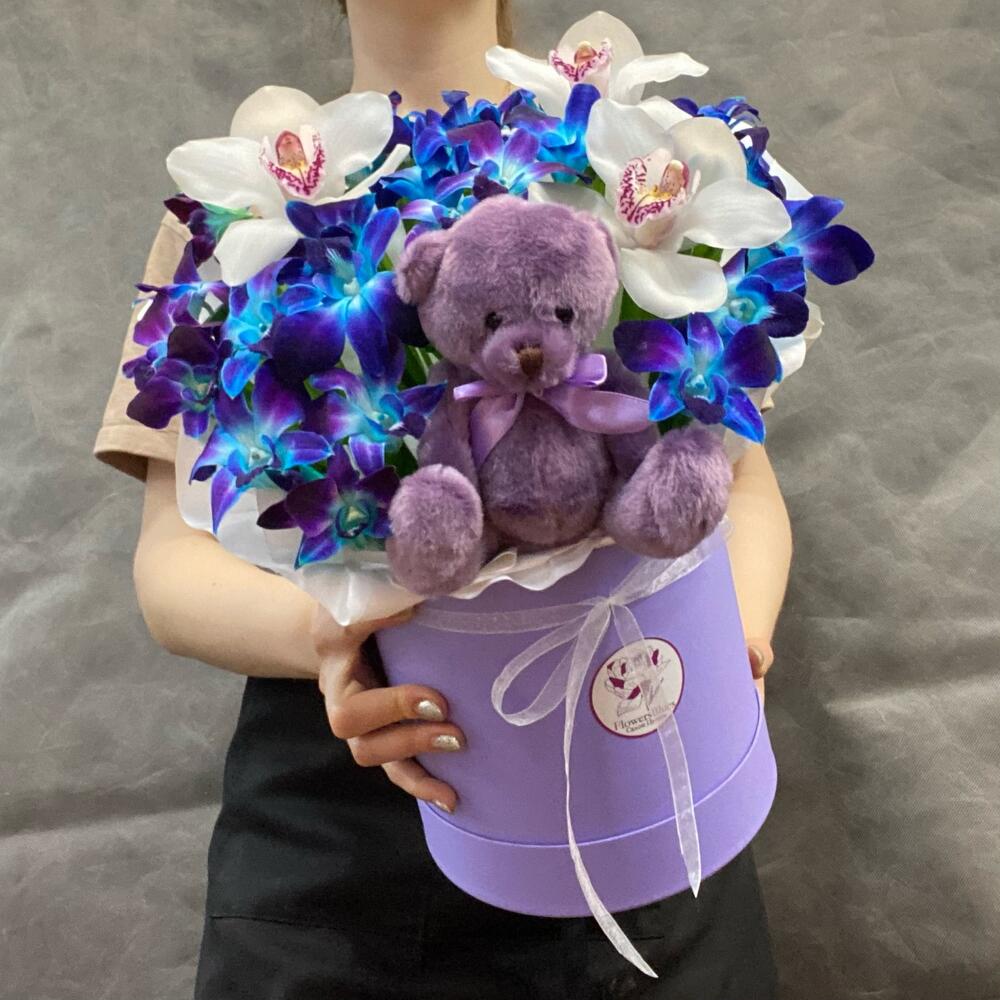Орхидея в коробке с мишкой