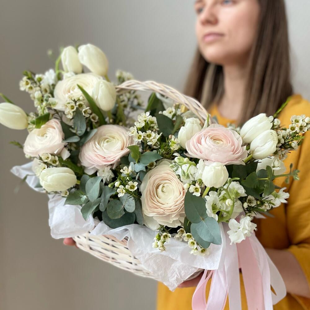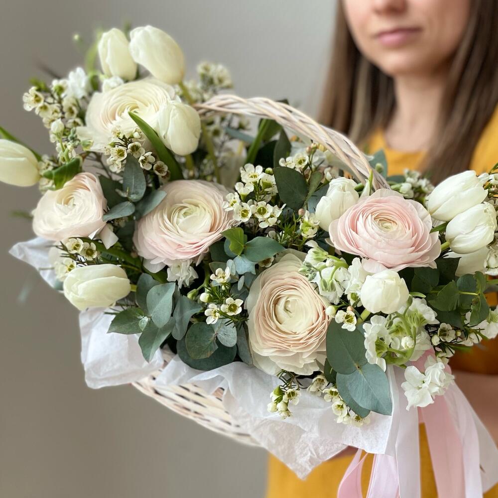 Нежнейшая корзина с ранункулюсами в составе 😍