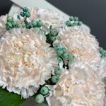 Рускус - 3 шт. Лента атласная - 1 шт. Диантус - 11 шт. лен сухоцвет - 21 шт.