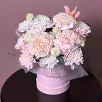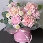 Пиафлор (оазис) - 1 шт. Эвкалипт - 1 шт. Диантус - 3 шт. бокс s - 1 шт. алтай хризантема - 1 шт.