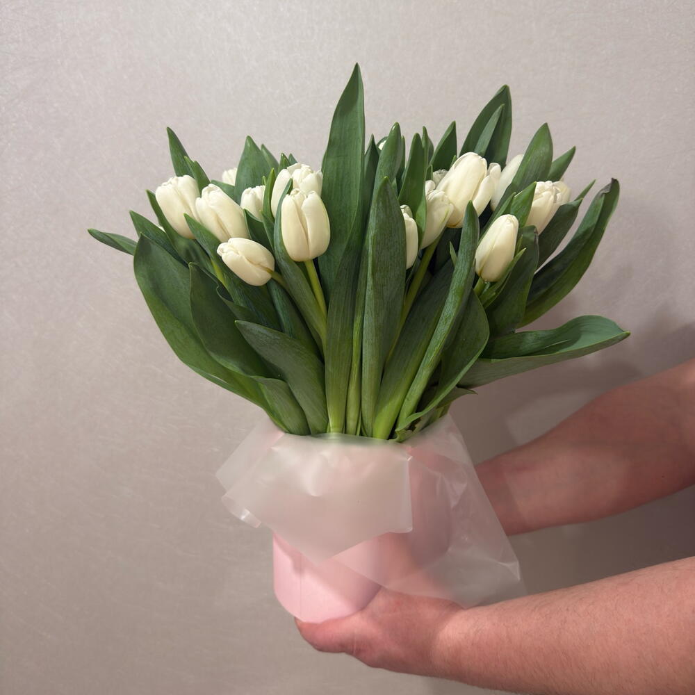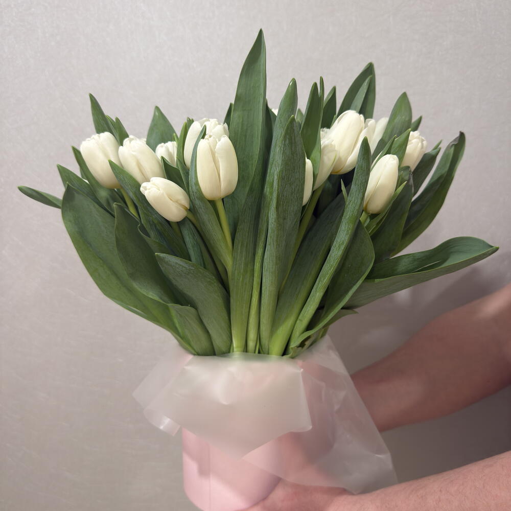 Цветы в коробке/ белые тюльпаны