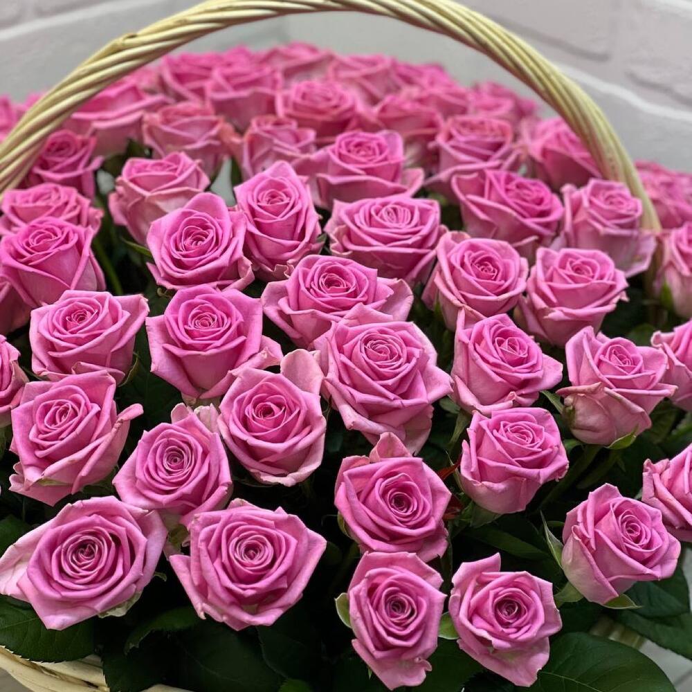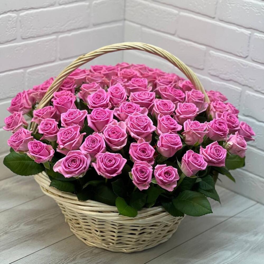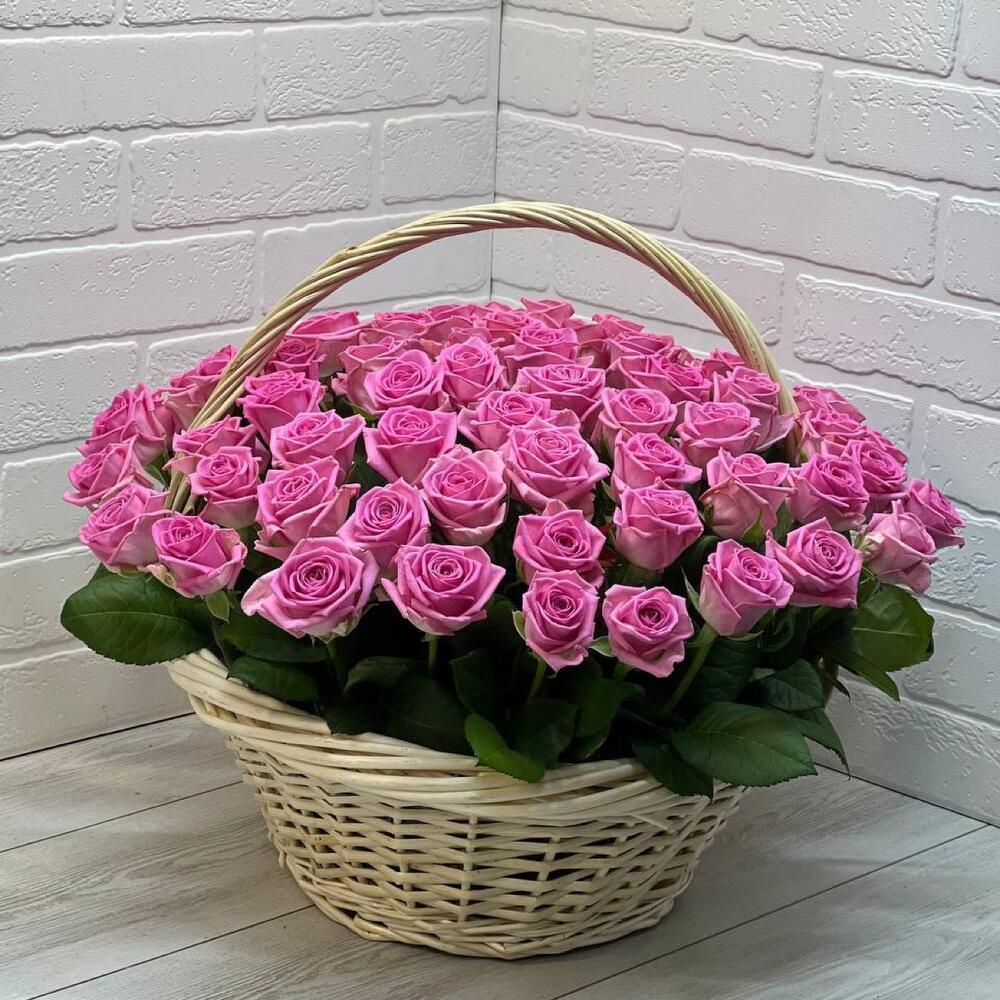 Корзина - 1 шт. Роза аква - 101 шт. Оазис флористический - 3 шт.