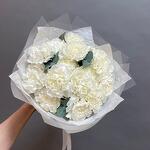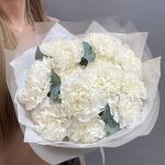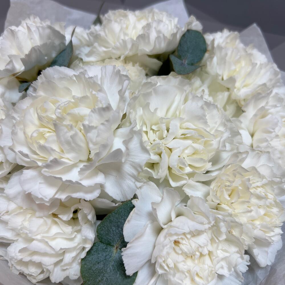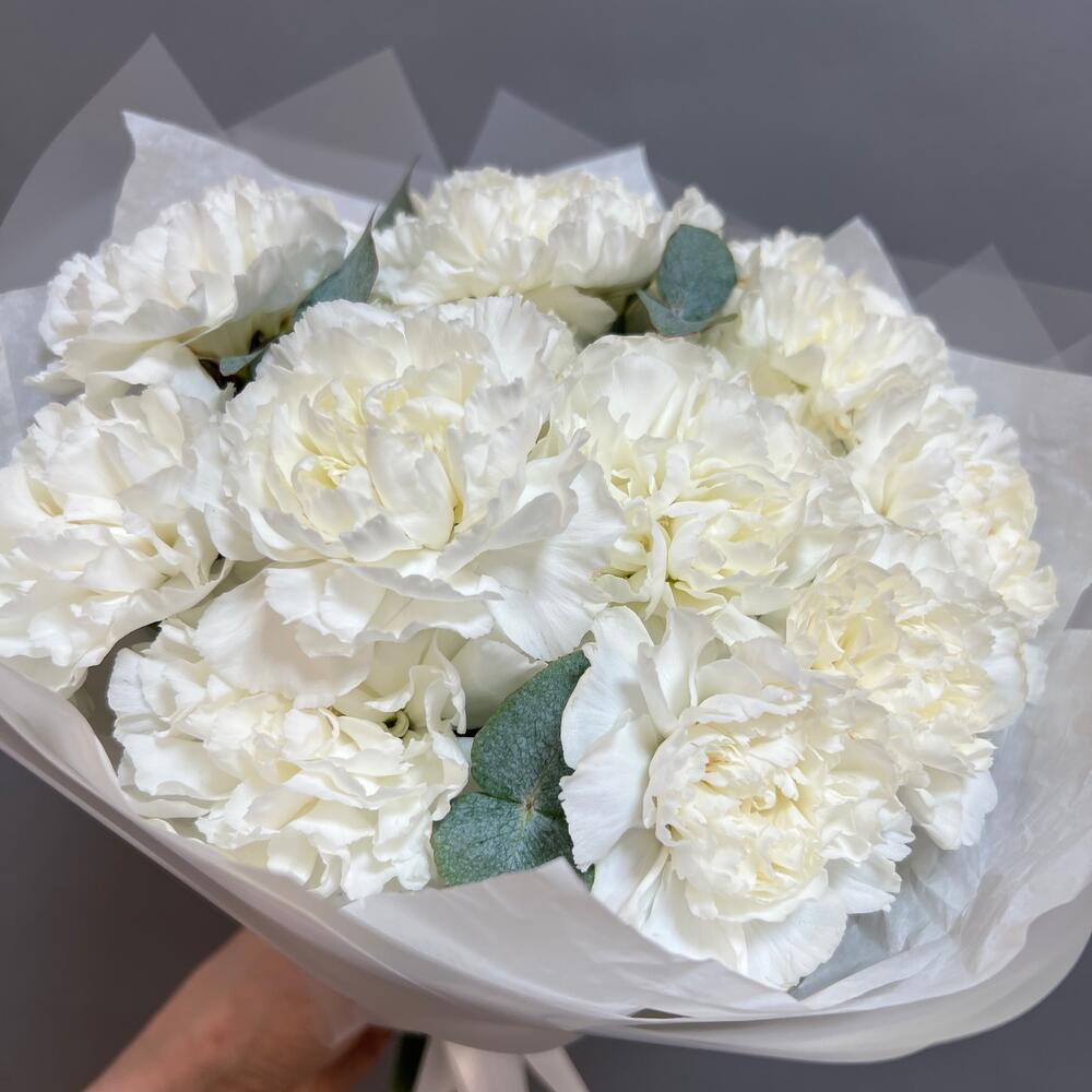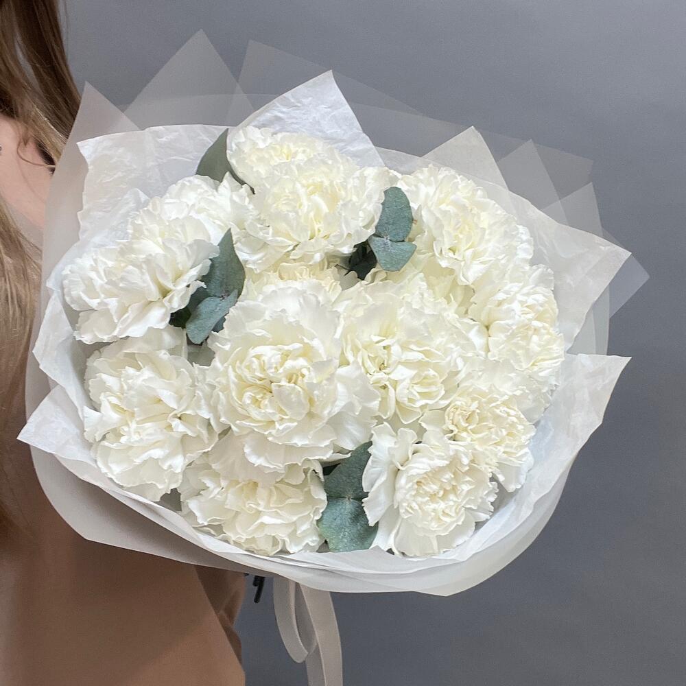 Эвкалипт - 1 шт. Упаковка матовая - 2 шт. белые гвоздики диантус - 15 шт.