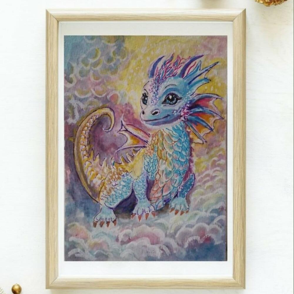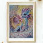 Открытка-картина выполнена в акварельной технике с применением художественных маркеров. Ручная работа. Профессиональная бумага. Дракон_талисман - добрый, светлый, радужный, помощник.