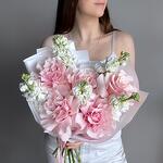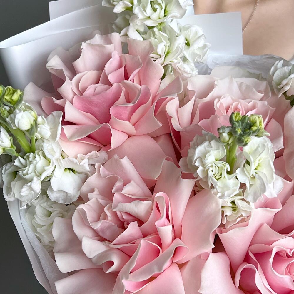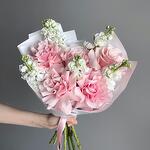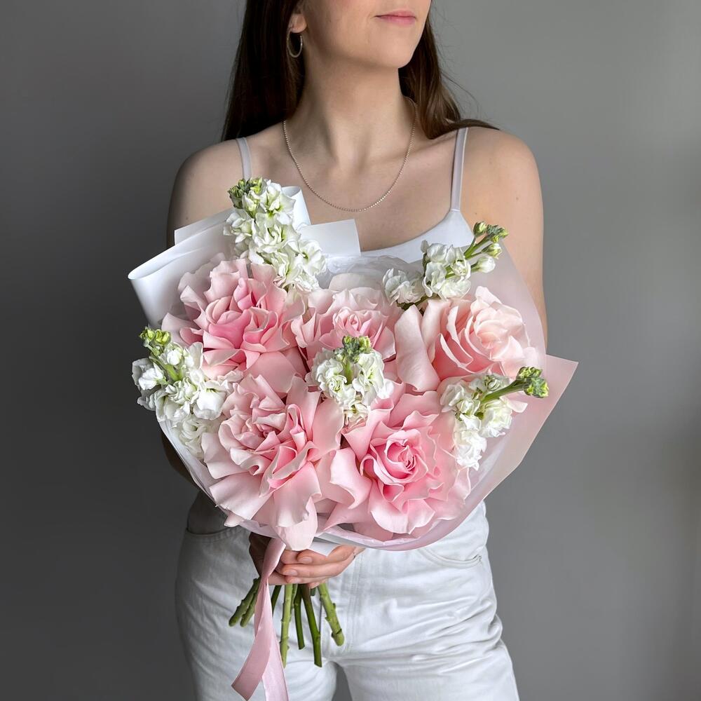 Маттиола - 5 шт. Роза pink mondial - 5 шт. Дизайнерская упаковка - 1 шт.