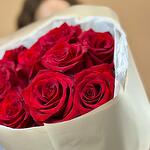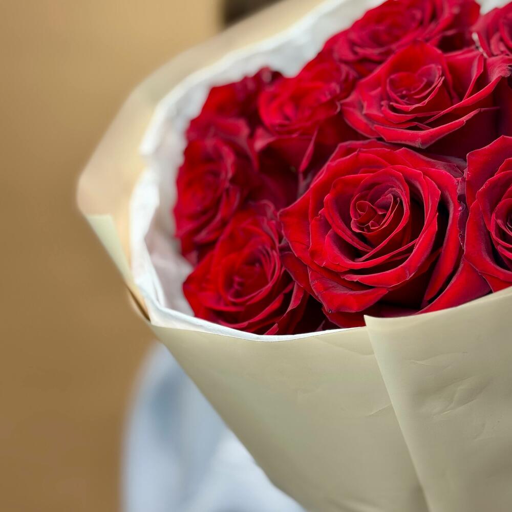 Букет из девяти красных роз — воплощение элегантности и страсти. Каждая роза, словно драгоценный камень, сверкает своим насыщенным цветом, создавая ощущение тепла и уюта. Белоснежная упаковка, в которую они аккуратно завернуты, подчеркивает их красоту и добавляет нотку изысканности. Красная лента, обвивающая букет, словно символ любви и привязанности, завершает этот прекрасный образ. Такой букет способен передать самые искренние чувства и создать атмосферу романтики и нежности.