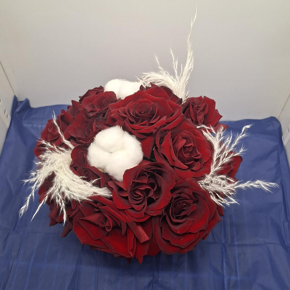 Хлопок - 2 шт. французская роза эксплорер - 15 шт. сухоцвет пампасная трава белая - 3 шт.