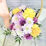 Хризантема кустовая - 3 шт. Гвоздика - 3 шт. Фисташка - 1 шт. Роза фиолетовая - 5 шт. любовь флориста - 10000 шт.