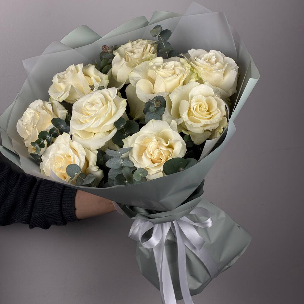 Эвкалипт - 1 шт. Роза - 9 шт. Упаковка - 1 шт.