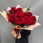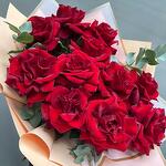 Эвкалипт - 1 шт. Упаковка - 1 шт. Лента атласная - 1 шт. Роза французская - 11 шт.
