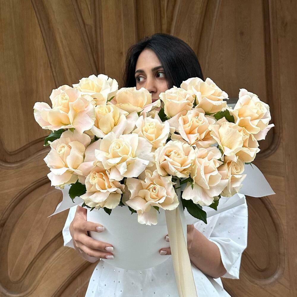 Французские розы в коробке Шармант