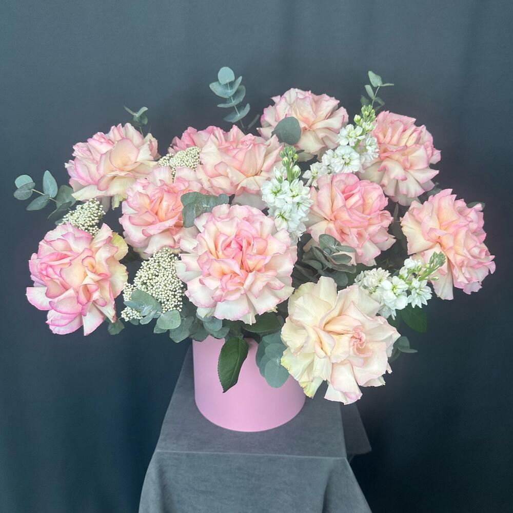 Композиция с французкими розами и маттиолой в розовой шляпной коробке - это изысканный и стильный подарок, который обязательно порадует и удивит получателя. Розы и маттиола - это цветы, которые символизируют любовь, страсть и нежность. Они прекрасно сочетаются в одной композиции, создавая неповторимый и чарующий образ. Розовая шляпная коробка придает композиции особый шарм и элегантность. Она не только служит упаковкой, но и является стильным элементом декора, подчеркивающим изысканность и утонченность подарка. Композиция с французкими розами и маттиолой в розовой шляпной коробке станет отличным выбором для тех, кто хочет сделать оригинальный и запоминающийся подарок. Такой подарок будет радовать получателя своей красотой и ароматом, а также напоминать о вас каждый день.