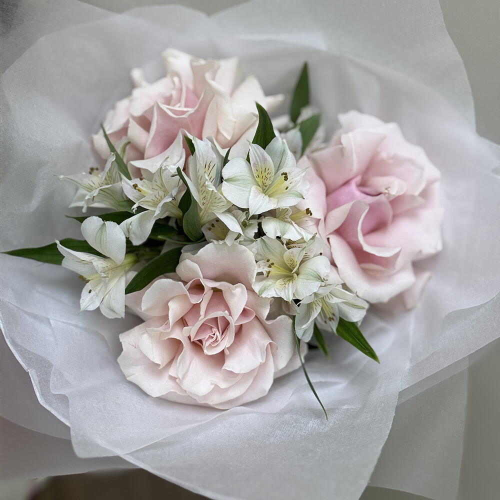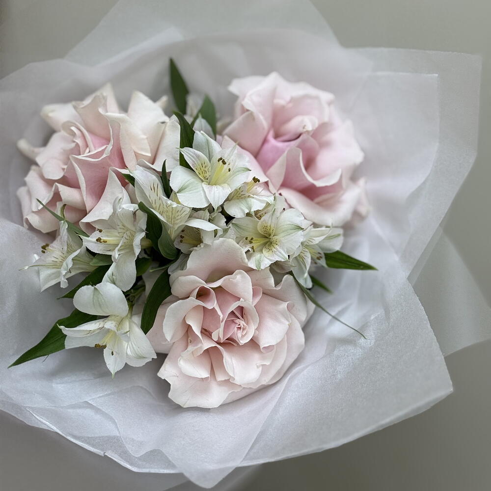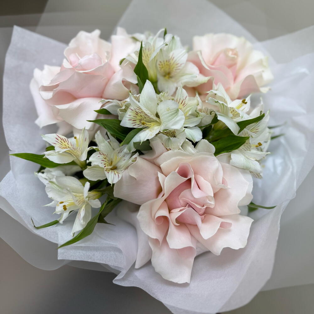 Этот букет — как утро в маленьком парижском квартале: мягкий свет, тишина, ещё тёплый воздух и ощущение, что спешить некуда. Пудрово-розовые розы с тончайшими лепестками раскрываются медленно и деликатно, а светлая альстромерия добавляет композиции свежести и лёгкой утончённости. «Французское утро» — про неспешность, вкус к деталям и красоту в простоте. Про моменты, когда счастье не требует повода, а внимание чувствуется даже в тишине. 🎁 Кому подойдёт • ценителям французской эстетики и минимализма • романтичным, нежным, вдумчивым • девушке, жене, маме, близкой подруге • тем, кому важно не «вау», а чувство 💌 По какому поводу • свидание • день рождения • знак заботы без повода • помолвка, выписка, рождение ребёнка, крестины • День Святого Валентина • «просто потому что ты есть» 🌿 Как ухаживать за букетом • Подрежьте стебли на 1–2 см под углом перед постановкой в воду • Используйте чистую вазу и прохладную свежую воду • Меняйте воду каждый день • Удаляйте листья ниже уровня воды • Держите букет вдали от прямого солнца, батарей и сквозняков