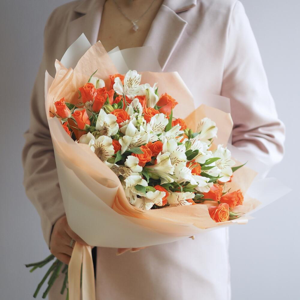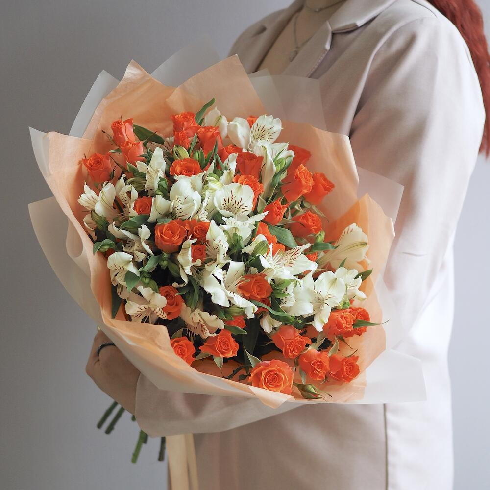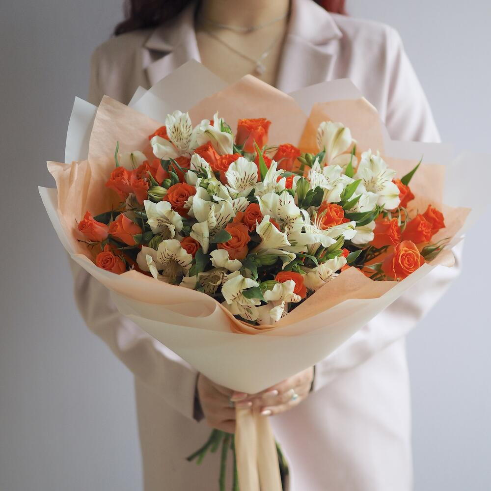 Гармоничный дуэт с кустовой розой и альстромерией