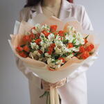 Альстромерия - 6 шт. Роза кустовая - 7 шт. Упаковка - 1 шт.