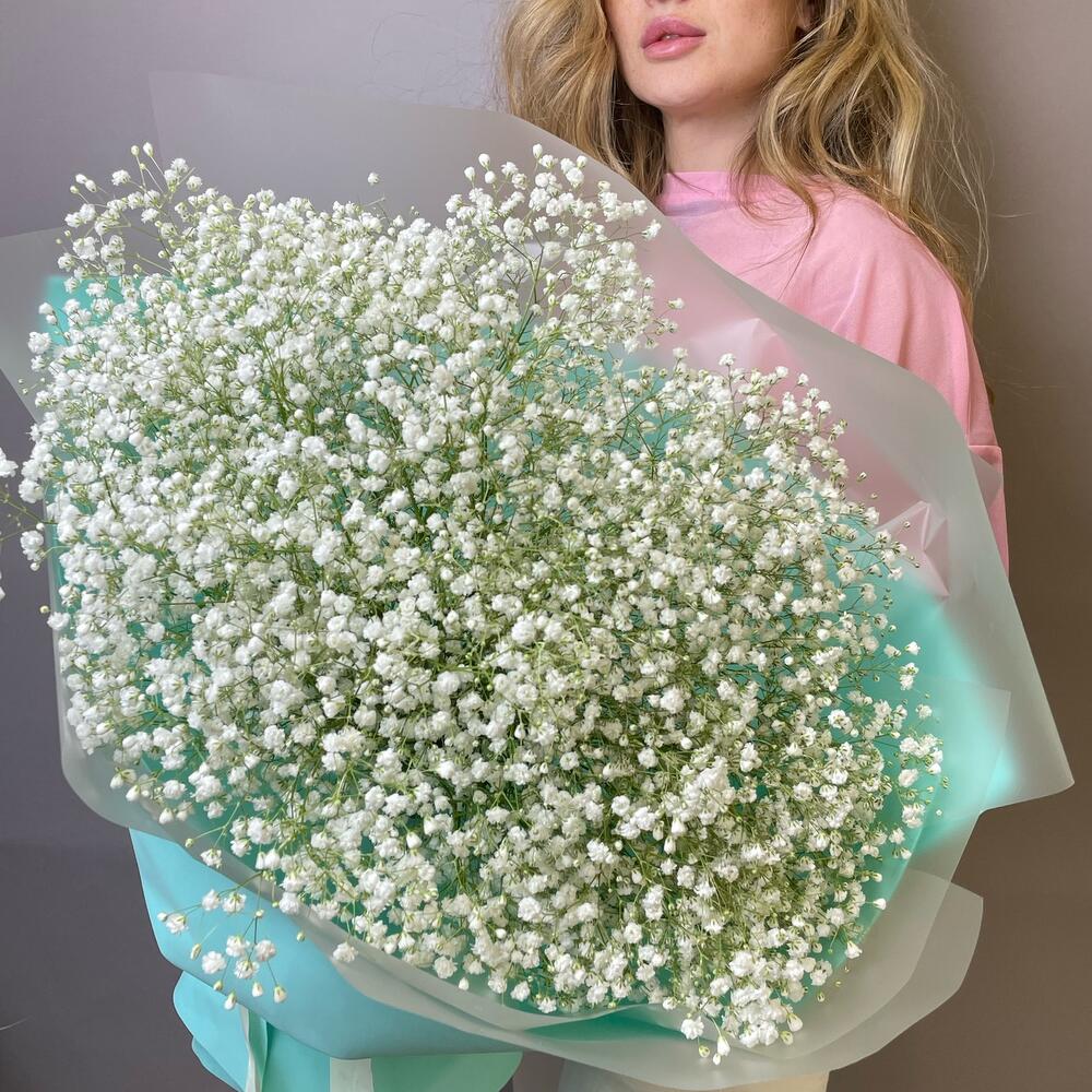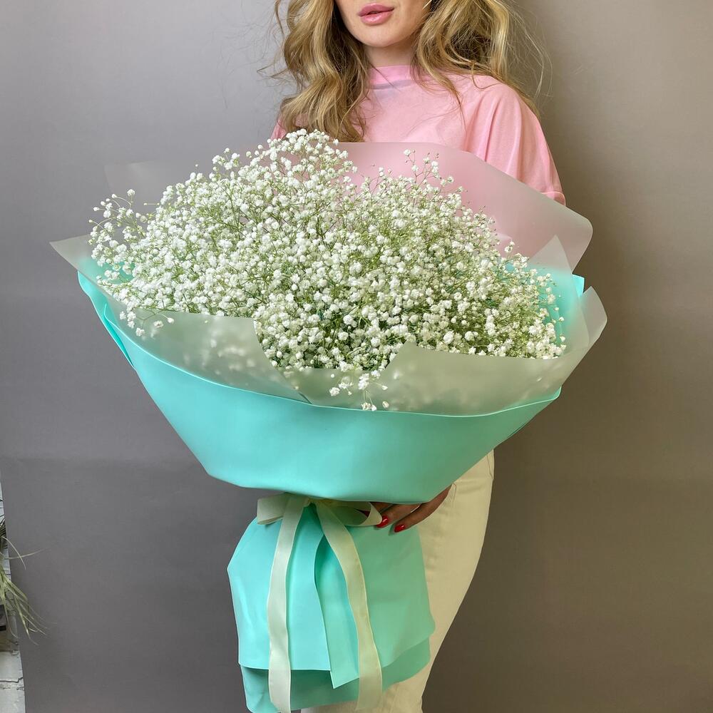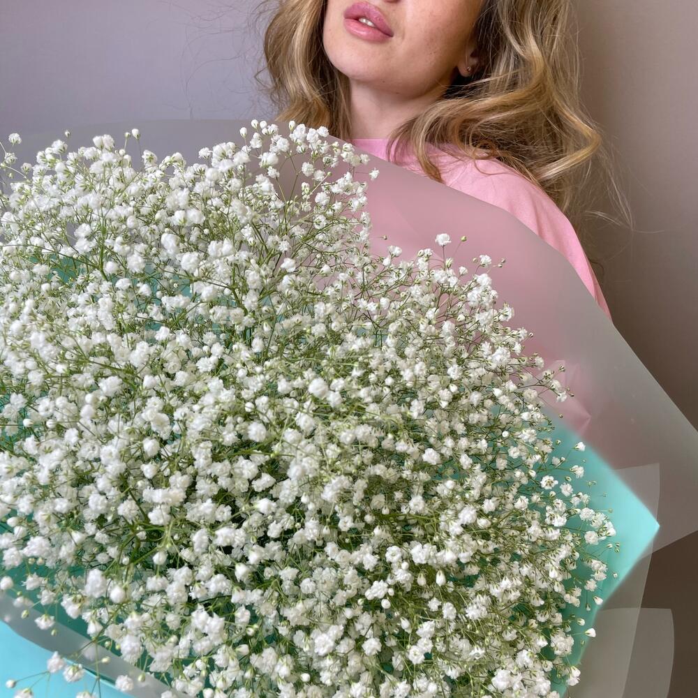 Гипсофила - 9 шт. Лента атласная - 1 шт. Упаковка дизайнерская - 4 шт.